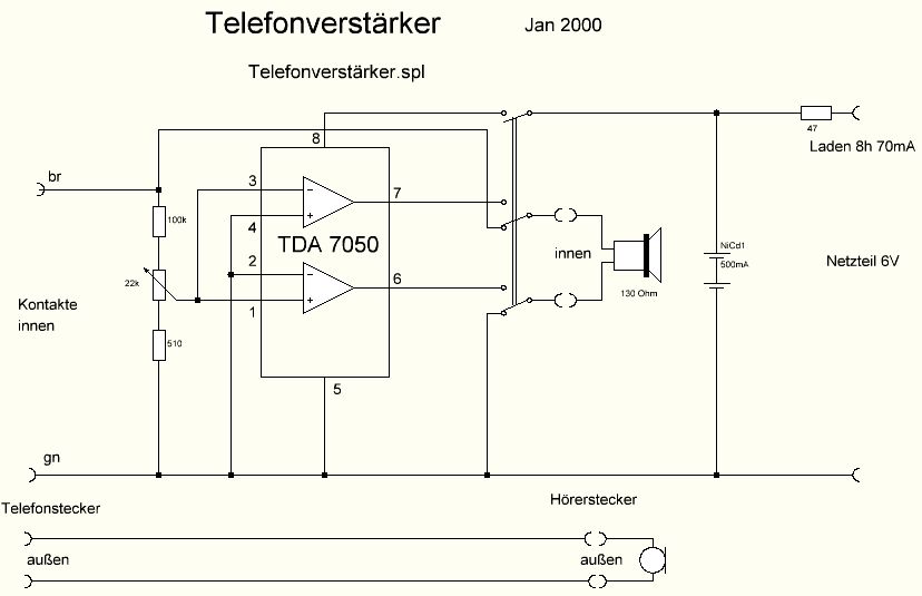 Zum Telefonieren habe ich eine einfachere Lösung verwendet. Einfach ein Mini-Verstärker mit passenden Buchsen, der direkt zwischen das Kabel zum Hörer gesteckt wird. Das Mikrofon ist einfach durchgeschleift (siehe Anhang). Das ist wesentlich praktischer, da nirgens etwas umgeschaltet werden muss. Das geht leider nur bei Telefonen mit einem Kabel zum Hörer oder bei einem Headset. Bei den Schnurlosen muss man einfach ein Exemplar mit einstellbarer Lautstärke nehmen. Ich habe z.B. das Gigaset S850HX. Das ist wesentlich lauter als meine alten Gigasets und man kann es über Bluetooth zum Hörgerät koppeln.