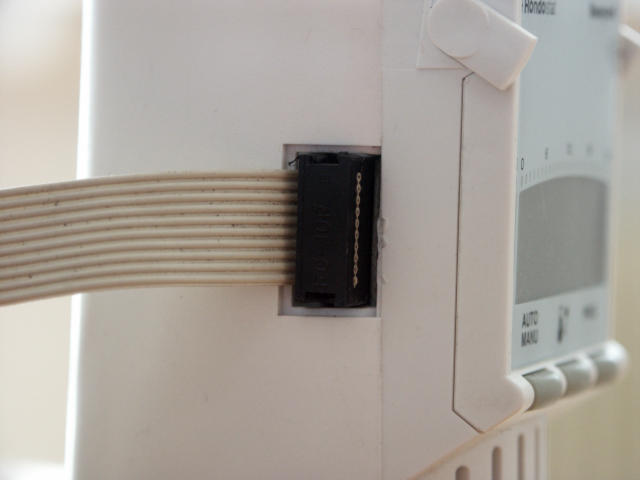 Moin, ein ganz normaler handelsüblicher Pfostensteckverbinder für Flachbandkabel, 2x5polig (z.B. Conrad Best.-Nr. 702013), erfüllt seinen Zweck voll und ganz. Er darf halt nicht zu breit sein, sonst paßt er nicht in den relativ schmalen Gehäuseausschnitt des HR20 - ggf. links und rechts einen mm abfeilen und gut. Die "Nase" des Steckverbinders sollte übrigens nach unten (also weg vom Display) zeigen, sonst paßt's nicht. Gruß Micha