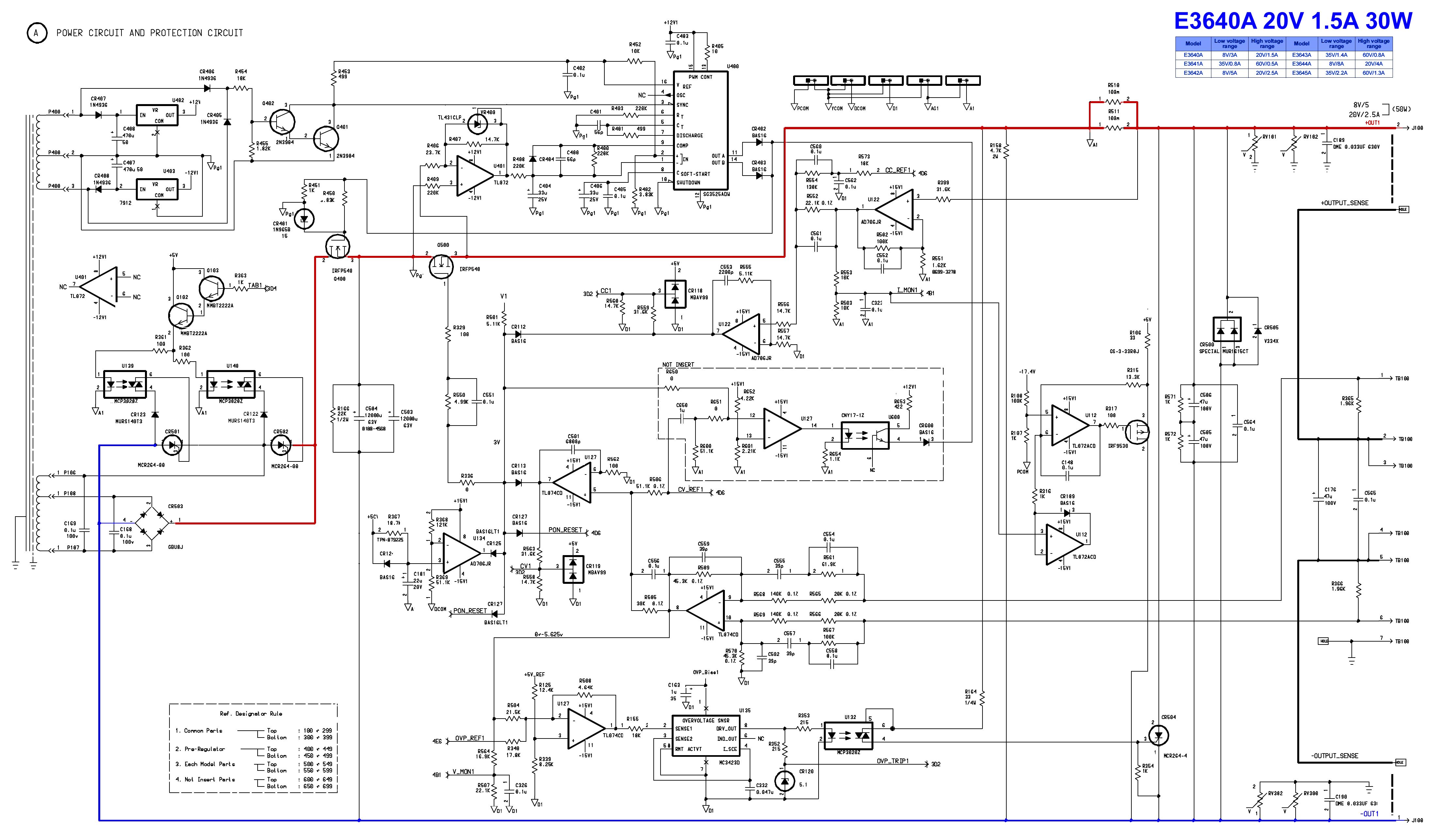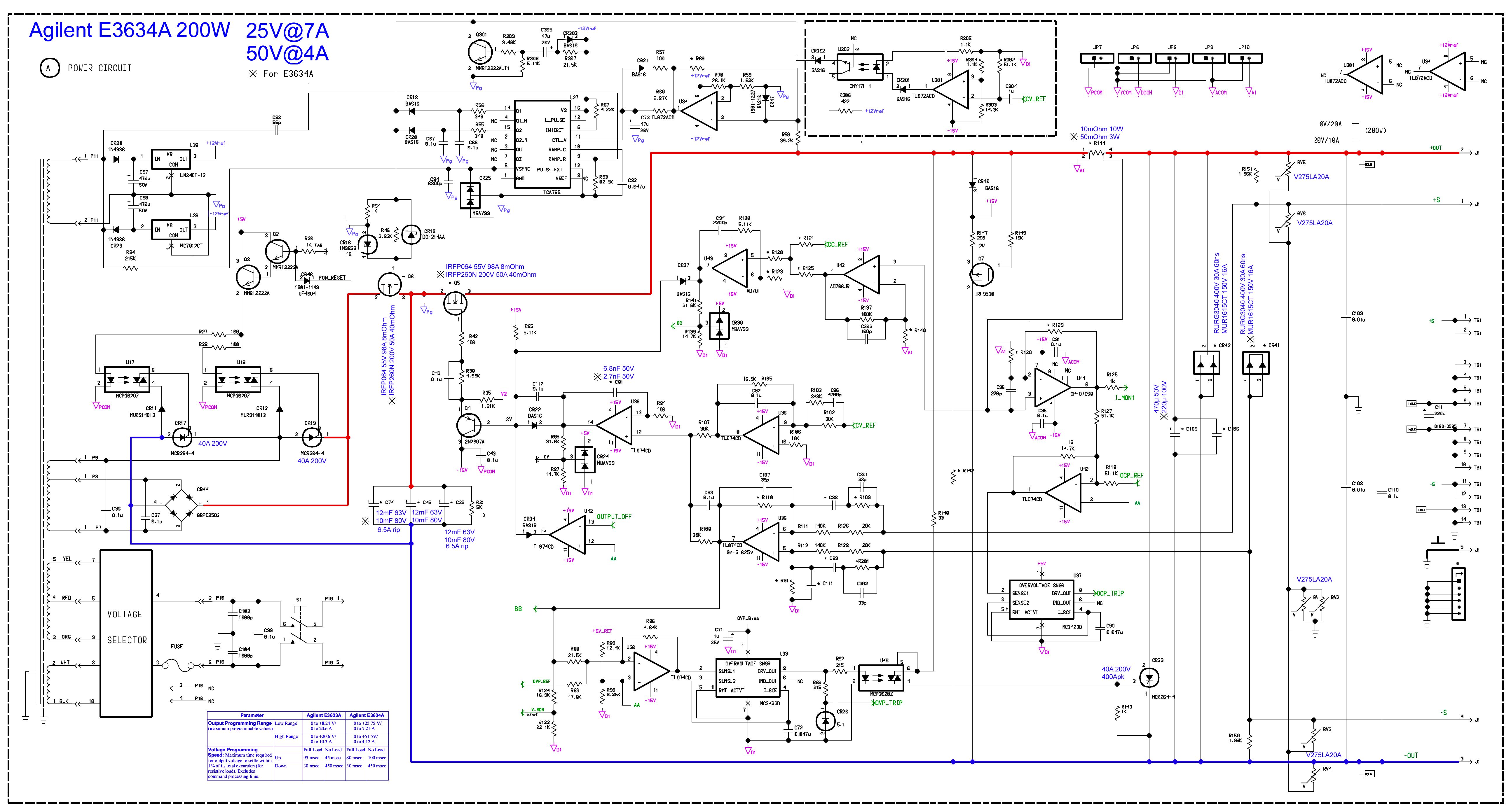 dagobert schrieb: > An einen Elko wird mit einem Brückengleichrichter Netzspannung > angeschlossen, und zwar immer nur dann, wenn die Netzspannung gerade > innerhalb des Sollbereichs liegt Wird in etwas modifizierter/erweiterter Version durchaus von z.B. Agilent in einigen ihrer Netzteile verwendet, allerdings als Vorregelung für einen klassischen Linearregler zur Reduktion der zu verbratenen Leistung. E3640A: Q500 ist der Linearregler, C504/C503 der Speicherkondensator, Q400 lädt gesteuert durch U400/SG3525A den Speicherkondensator über Trafo und Brückengleichrichter CR503 immer nur soweit auf, so dass der Spannungsabfall über Q500 (Speicherspannung-Soll Ausgangsspannung) nur ein paar Volt (z.B. 3V) beträgt, unabhängig von der vorgegeben Soll Ausgangsspannung. Der aktuelle Spannungsabfall wird mit U401 OpAmp abgegriffen und der PWM Modulator SG3525A steuert dann bei Unterschreitung des Sollspannungsabfalls den Q400 auf, solang bis wieder genug Saft im Speicherelko vorhanden ist. Die beiden Thyristoren CR501/CR502 dienen zusätzlich zum Zuschalten der oberen Trafowicklung (P108/P106, High Voltage Range)