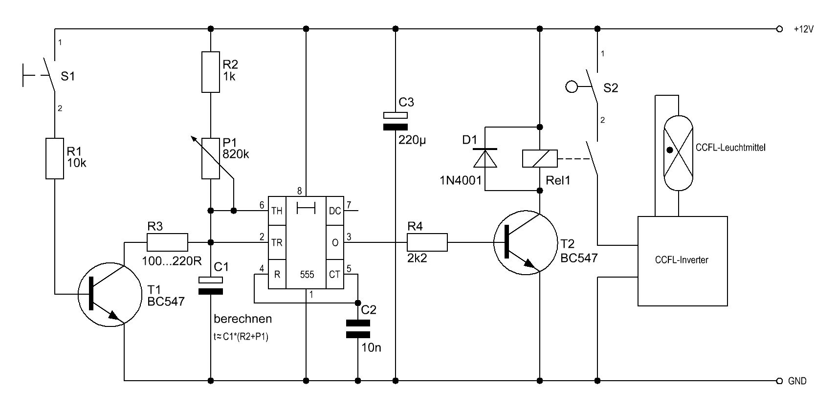 Harald W. schrieb: > Stefan schrieb: > >> (Achtung, Isolation der Zuleitung zur Lampe) > > Welche Isolation ist eigentlich UV-sicher? Die meisten Kunststoffe > zerbröseln doch unter UV-Bestrahlung. Teflon oder Silikon sollten sich eignen. Ich gehe mal davon aus, das Leitungs-Material, welches für CCFL-basierende LCD-Hintergrundbeleuchtungen verwendet wurde, könnte geeignet sein. Man sollte die Zuleitungen zudem so platzieren, dass diese möglichst wenig der UV-Strahlung ausgesetzt sind. Wenn man sich aus Alu einen kleinen Reflektor biegt, dann hat man die Möglichkeit, die Zuleitung dadurch einigermaßen abzuschatten. Wichtig bei den CCFL-Invertern ist, dass am "heißen Ende" eine gute Isolation vorhanden ist. Ich habe schon mal die Erfahrung gemacht, dass mir meine Schreibtischplatte angekokelt ist, als die nackte Platine während des Betriebs auf diesem gelegen hat. Ein sicherer mechanischer Aufbau ist unabdingbar. Nochmal als Erläuterung zum grob gefassten Schaltplan, der Schalter "S2" in Reihe zum Relaisschließer, soll die Sicherheitsmaßnahme bezüglich der Problematik erfüllen , welche Karl B. (gustav) erwähnte. Eine UV-induzierte Bindehautentzündung ist kein Spaß! LG Stefan