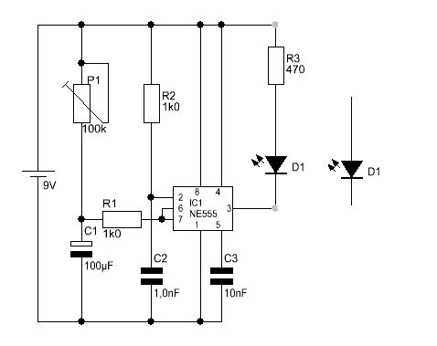 Mit dem normalen NE555 geht das unter Umständen auch, nur dann halt nicht mit PNP sondern mit LED direkt an Pin3. Denn der NE555 kommt zwar im High-pegel bei Vcc 15V nur auf etwa 13V noch, aber die LED hat ggf. mehr als 2V Flusspannung und leuchtet daher bei high-pegel nicht. Da müsste man dann wissen, was das für ne LED ist. Der TLC555 kommt aber bei 15V Vcc auch nur auf etwa 12,5V? Dann wäre der ja schlechter für die Aufgabe geeignet als der Bipolare. In beiden Fällen (Bipolar oder CMOS) kann man zur Not noch ne normale Diode in Reihe zur LED schalten, falls die nicht ganz ausgeht.