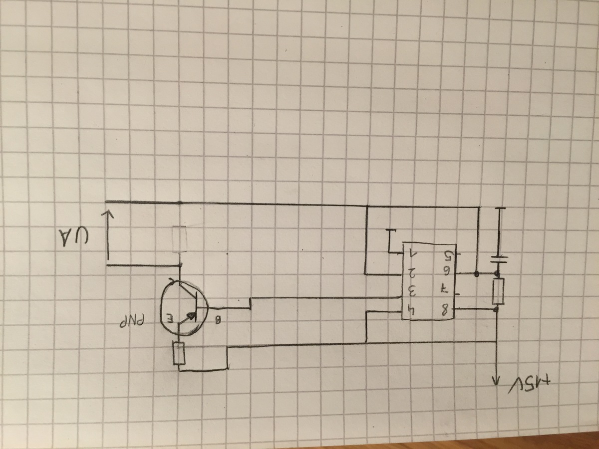 Hallo Leute! Ich habe gelesen, dass der Pin 3 beim NE555 ein Gegentaktausgang ist, das heißt doch das dieser 0V und + Ub annehmen kann oder? Wie muss ich meine Schaltung ändern damit am Pin 3 eine Positive Spannung ausgegeben wird? (Die zweite Diode im Schaltplan ist unabsichtlich reingerutscht.) Ich bin sehr dankbar über jede Mithilfe. Mit freundlichen Grüßen Thomas
