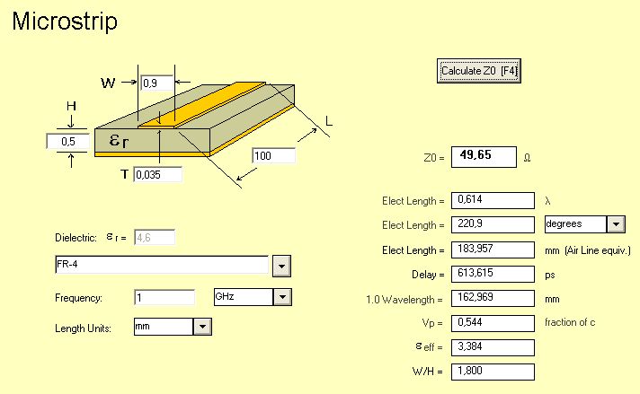 herbert schrieb: > da ändert sich seltsamerweise beim > ändern der Länge auch der Wellenwiderstand. Das soll ja wohl nicht sein. > Kann mir bitte jemand was dazu sagen? Hmm verstehe ich nicht, hier zwei Beispiele Du solltest wirklich Beispiele von dir dazu geben damit man weiß was Du genau meinst Hier was ich aus Deiner Frage errate: mit AppCAD 4 berechnet eine microstrip mit 100mm und 1000 mm Länge und dort ist Z0 gleich Aber: beachte die Eingabe erwartet Komma-Format also was verstehe ich an deiner Frage falsch EMU