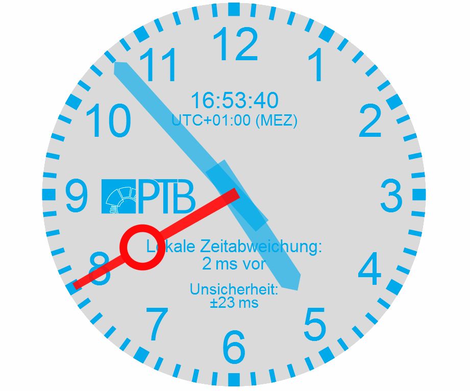 >> Dann schau dir mal die Uhren im Fernsehen vor den Nachrichten an. > Und erstmal die Uhren von diversen internetsynchronisierten PCs und > Tablets. Man muss halt die Rechneruhr mit der richtigen Quelle synchronisieren! https://uhr.ptb.de/