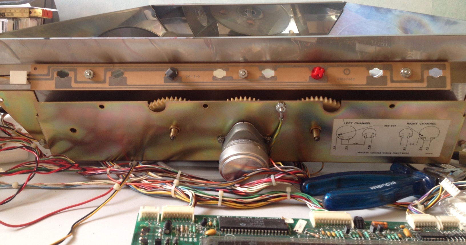 mpunkt schrieb: > Oben schreibst Du von "Birnen" (Glühbirnen?) unten von LEDs. Was > verwendest Du tatsächlich? LEDs brauchen idR (wenn mit Konstantspannung > versorgt) Vorwiderstände, deren Größe von der Versorgungsspannung und > den LEDs abhängt. Sind hier irgendwo Vorwiderstände verbaut? Vielleicht > in den Fassungen? Wenn nicht ist es nicht ganz unwahrscheinlich dass Du > die LEDs mit 12 V zerschießt. Das Layout verstehe ich so, dass nicht die > hell kupferfarbenen Bereiche leiten, sondern die dunkleren. Ist das > richtig? Dann wäre es in der Tat so, dass immer zwei Leuchtmittel (um es > mal neutral zu sagen) in Reihe liegen und alle Zweierketten parallel > zueinander. Wenn Du passende Vorwiderstände verwendest und außerdem die > Polarität beachtest (s.o.) könnte man mMn mit dieser Platine acht LEDs > an 12 V betreiben. Im Allgemeinen ist es auch immer recht nützlich ein > bißchen Kontext zu geben, sprich: was ist das überhaupt und was soll das > Ganze ... :-) Danke. Ja, die dunklen Stellen sind die Leiterbahnen! Das ist eine Leuchteinheit einer uralten US-Jukebox/-Musikbox von 1989. Original sind 5mm-Steckbirnen verbaut und die originale Spannung sind 30VAC. Ich konnte allerdings keine Steckbirnen mit diesen Dimensionen und für 30VAC mehr finden. Die sind schweineteuer. Es gibt keine Vorwiderstände. Es sind LEDs dieser Bauart: http://www.ebay.de/itm/10-x-12V-Blau-T5-B8-3D-5050-1SMD-LED-Cockpit-Tacho-Instrumenten-Beleuchtung-/271930424968?hash=item3f5050fe88:g:dt8AAOSwZtJW-6LO