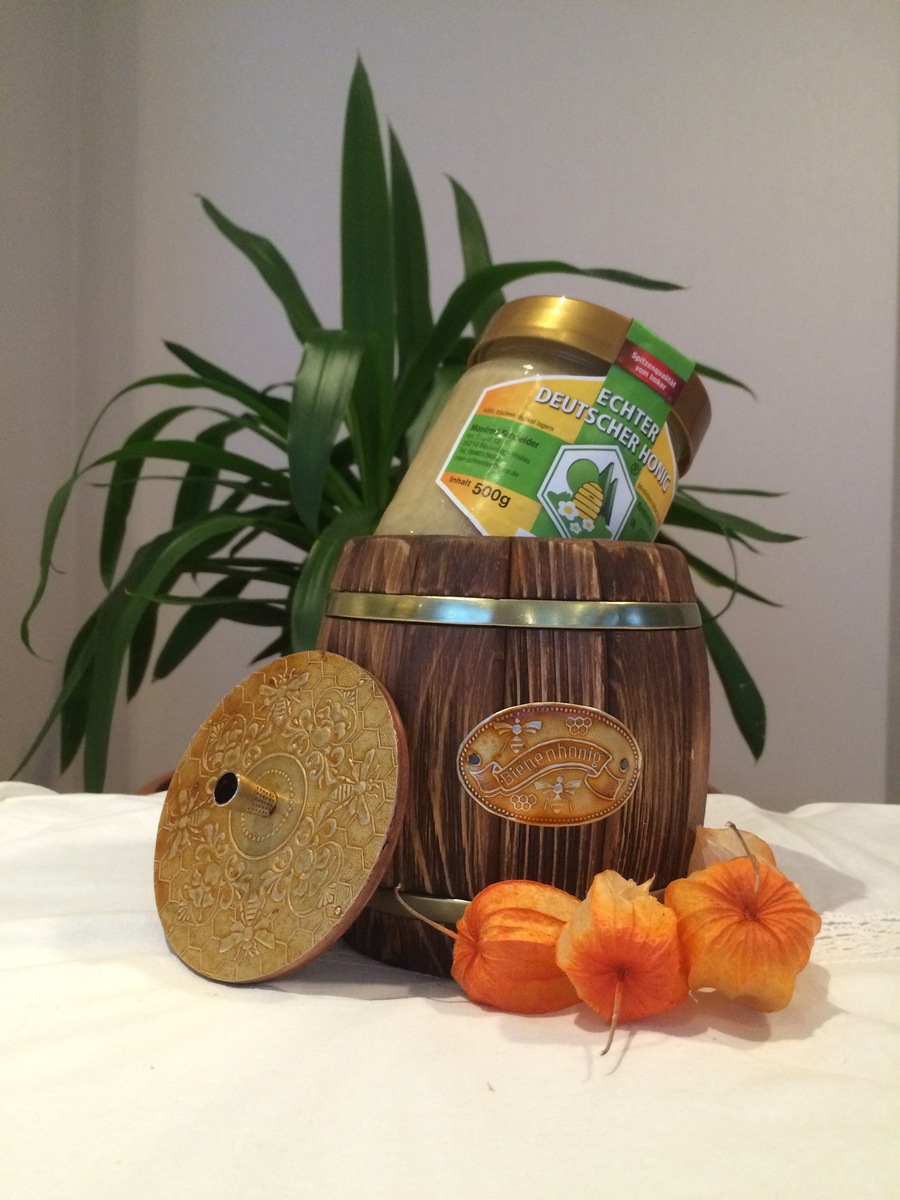 Hallo Leute! da ich ein leidenschaftlicher Hobbyimker bin, wollte ich meinen Honig etwas anders auf den Markt bringen als meine Imkerkollegen. Dafür wurde ein Honigfass entworfen und produziert. Das Fass wurde aus Kiefernholz gefertigt und ist 100% handgearbeitet. Das Honigfass sieht dekorativ, rustikal und edel aus, damit ist es ein perfektes Geschenk für jeden Anlass. Das Fässchen wurde für ein 500 g DIB- Einheitsglas oder ein Neutralglas konzipiert. (DIB = Deutscher Imkerbund e. V.) Die äußeren Abmessungen betragen ca. 130x130mm. Das Fässchen ist besonders zu der Weihnachtszeit sehr beliebt, meistens wird es an Eltern oder Großeltern verschenkt. Minimale Abweichungen sind keine Minderung der Qualität, sondern ein Merkmal von individueller Handarbeit. Mehr unter: Google=das-honigfass Was haltet ihr von dem Produkt?