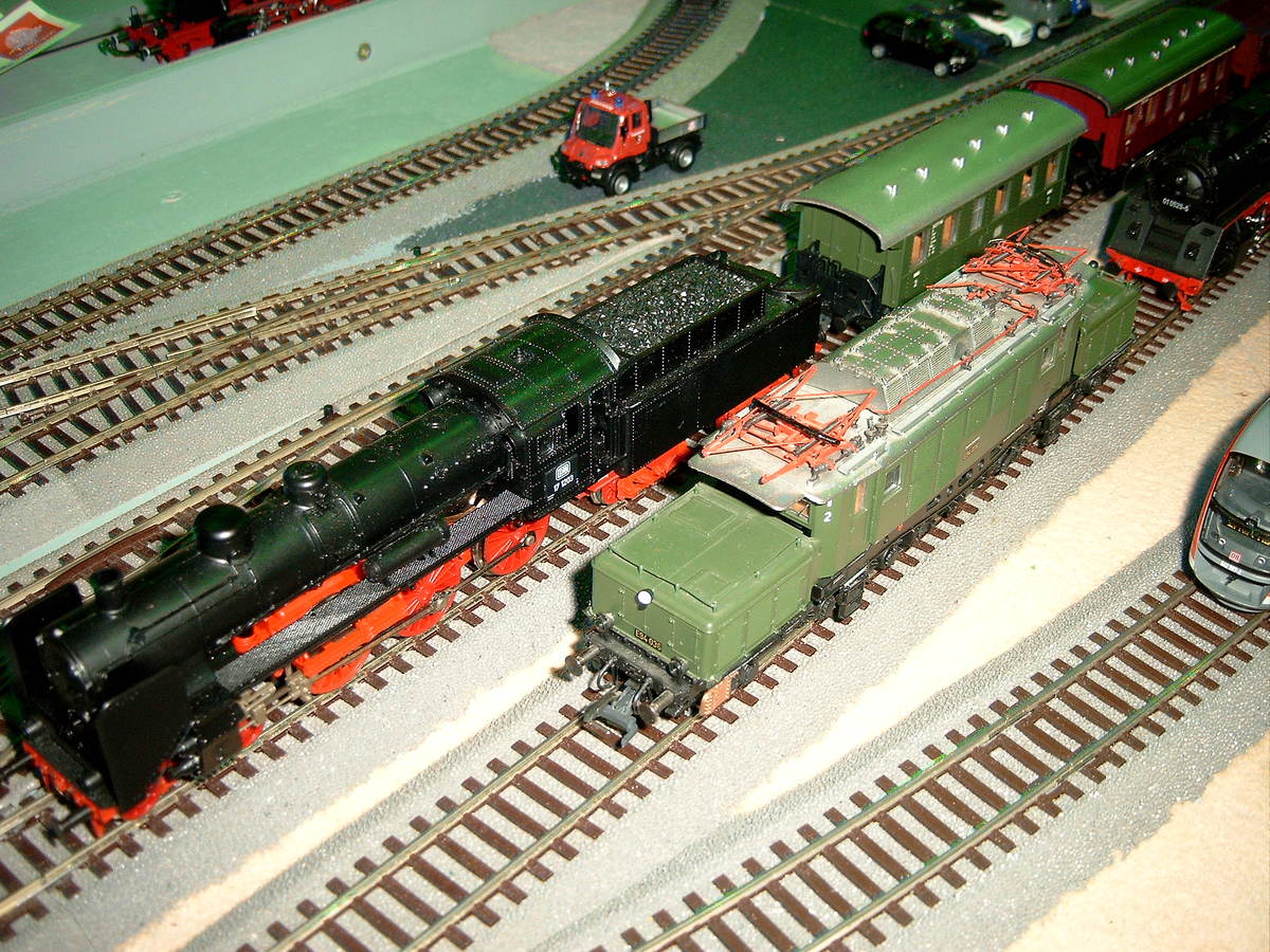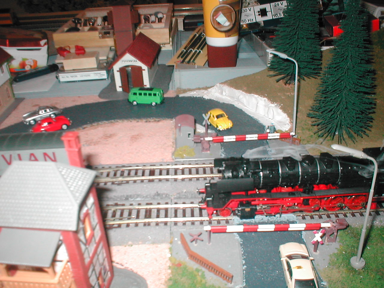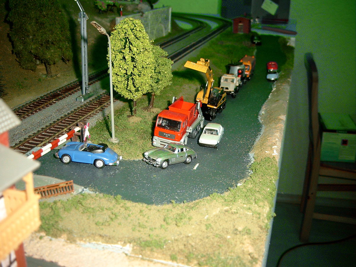 Ich danke dir... Ich finde auch: da kann man mal so richtig abschalten. Man wird zwar nicht an diese Perfektion herankommen wie z.B. im Miniatur-Wunderland / Hamburg. (mal auf Youtube / auf der Webseite gucken) Aber man kann sich ja auch kleine gesteuerte Sachen einfallen lassen, hier ein Modul für Baustellen-Warnbalken mit Lauflicht, da ein Schweißlicht in einer Bahnwerkstatt, ein bewegter Bagger auf dem Schrottplatz... Jedoch überlege ich gerade wie ich die Module ersetzen kann durch eine große Platte welche man auch mal platzsparend hochkant an die Wand stellen kann, für so eine Decken-Liftanlage ist leider nicht genügend Deckenhöhe da. Jedoch gefällt es mir nicht dann jedes mal alles bewegliche / nicht angeklebte vorher herunternehmen zu müssen :-(