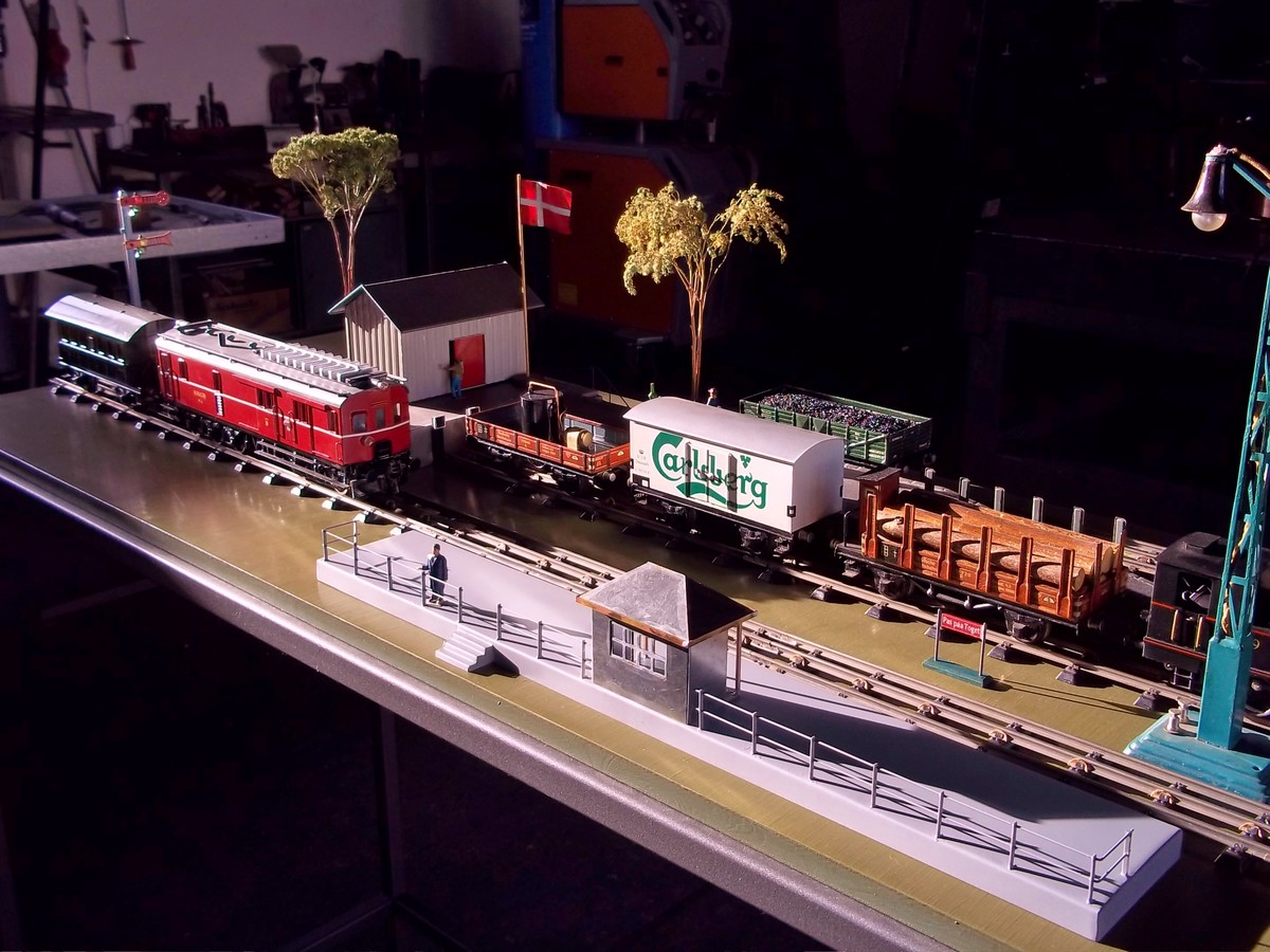 Christoph K. schrieb: > Den grünen vorne und den offenen Baumstammtransporter habe ich auch, > incl. Stämme. Und ein paar Fotos von Weihnachten 1961, mit mir und der > Spur Null Märklinbahn auf dem Fußbden. > Ich hab mal angefangen für die Waggons eine Wandvitrine zu bauen, aus > einem großen Bilderrahmen und seitlichen Hartfaserwänden. Kann man > natürlich auch kaufen, auch für Spur Null. Die Wagen sind von Märklin. Aber die beiden Lokomotiven und der Carlsberg Wagen sind von mir. ( Pure Handarbeit). Natürlich auch Laderampe, Güterschuppen und Signal. Stilgerecht alles aus Blech, sauber gelötet. ( Die leeren Verdünnungskanister sind ideales Ausgangsmaterial :) Viele Grüße Bernd