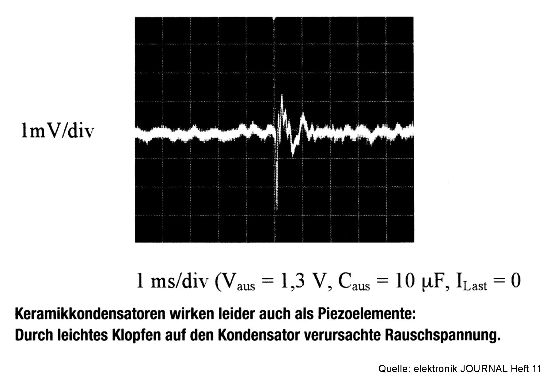 10uF als Keramik? Das muss ja nen ziemlich grossser Eimer sein, oder? Oder die Zeitschrift hat für diesen Test ein äusserst empfindlichen Probanden gewählt und mitm Hammer draufgehauen. Ich denke, der Effekt dürfte in normalen Dimensionen absolut vernachlässigbar gering sein.