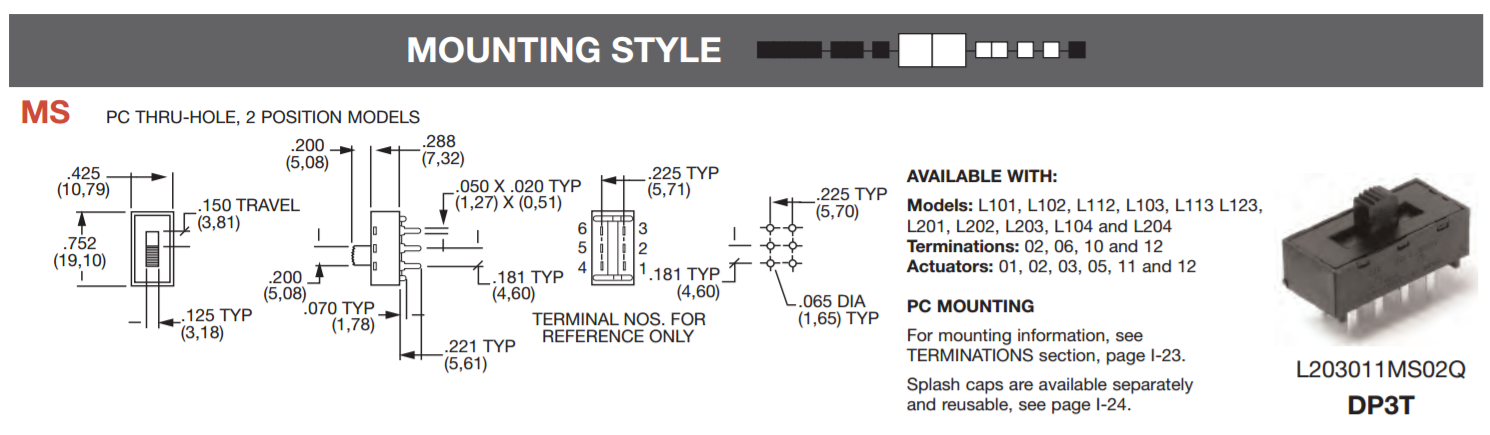 Der von dir gewählte L101011MS02Q aufgeschlüsselt: L101: SPST (Single Pole Single Throw / einpoliger Einschalter) 01: Schieber 0,200 Zoll hoch 1: Schieber mit Zahnung MS: PC Thru-Hole (Pins für Durchsteckmontage) 02: PC Thru Hole (s.o.) Q: Kontaktmaterial Silber Pins hast du genau zwei. Da wird die Auswahl nicht so schwierig...
