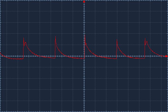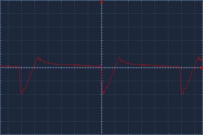 Axel R. schrieb: > DIe rote messpitze links (kanal1) an den Lastwiderstand, die weiße > Spitze (Kanal2) rechts an den Lastwiderstand. Math. Add1+2 > genauso am C5 die Störungen messen. > Kanal1 vom Oszi an PLUS vom C5, Kanal2 an MINUS vom C5 math.Add1+2 > Sonst scheint soweit alles iO, Du misst eben Mist. Ok, hab ich gemacht. Kannst du das interpretieren, ich verstehe das Ergebniss nicht so ganz ? Axel R. schrieb: > Wenn Du einkanalig messen möchtest, dann muss dein Masseanschluß auch > bitte an dem Punkt angeschlossen sein, ÜBER dem Du messen möchtest und > nicht übers Wohnzimmer am PE :) > Den PE (die gelbgrüne Buchse in der Mitte der Front am Netzteil) mach > mal wieder ab. und verwende zum messen die passenden Tastkopfklemmen und > schliesse die genau dort an, wo Du misst. Ich dachte ich könnte mir so die Krokodilklemme beim messen sparen. Bei relativ "einfachen" Signalen kann man da so machen, oder sollte man komplett drauf verzichten ? Axel R. schrieb: > Ein Widerstand im Gate > lässt den FET langsamer durchschalten und eine Diode sorgt beim > Abschalten dafür, das es zügig geht Werde ich ebenfalls austesten. Axel R. schrieb: > Mach dir ne kleine Platine oder steck das mal um, so dass der Strom hin > - aber auch wieder zurückfliessen kann. Was meinst du damit ? Auf dem rechten Breadboard befindet sich nur die H-Brücke mit den Transistoren die diese ansteuern. Es gibt nur den einen Minus und zwar über die Bananenbuchsen. Es werden nur die PWM-Signal des linken Boards auf das rechte verbunden. Matthias S. schrieb: > Besorg dir mal ein paar 470µF oder zumindest 100µF und benutze die. Ich hab die PE-Verbindung entfernt, hab 3x 100µF Elkos eingefügt und messe jetzt direkt am letzten Kondensator vor der Spannungsversorgung. Es sind zwar noch Störimpulse sichtbar (0,3Vss) jedoch sind diese deutlich geringer, als wenn ich die Kondensatoren auslasse (min. 10Vss). Sind das Erfahrungswerte, welche Größe man da nimmt, oder gibt es eine Faustformel ? Matthias S. schrieb: > Ooookaayy ;-) Gut, da wundert mich nix. In dem Verhau kann man beim > besten Willen nicht auf das Verhalten und Störimpulse schliessen. Ja ich weiß schäm, jedoch weiß ich nicht genau wie ich einen Testaufbau besser beschalten soll als mit einen Breadboard.