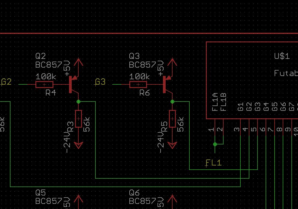 Wenn Du unbedingt mit Transistoren für dein VFD hantieren willst, sieh dir die Schaltung in der pdf Datei im Archiv an: http://www.pollin.de/shop/downloads/D120138S.ZIP