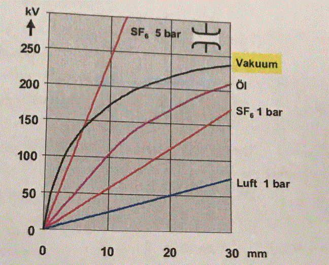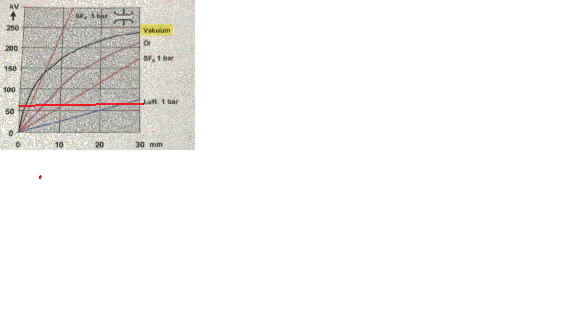 Für a.) bin ich der Meinung: "Alles ausser Luft bei 1 bar". Luft bei 1 bar kann bei 30 mm Abstand 75 kV Spitze isolieren. Aufgrund der genormten Testwechselspannung von 60 kVeff folgt der nötige Spitzenwert zu rund 85 kV. Für b.) beim Diagramm-Ablesen beachten, dass die Spitzenwerte der Testspannungen für "Trennstrecken" einzuhalten sind. Grüsse - Microwave