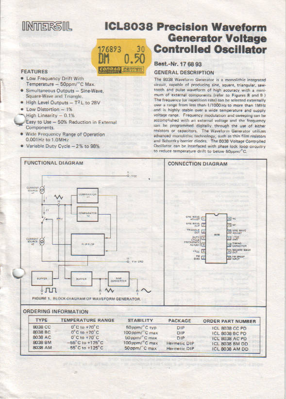 Der XR2206 war auch ganz nützlich. Baute mir damals damit einen kleinen Funktionsgenerator. Viele Intersil LSI Bausteine waren vor dem uC Zeitalter auch sehr nützlich. (ICL71x6/7, ICL7108, 7216 u.v.a.) Man konnte mit denen nette moderne (für die damaligen Verhältnisse) bauen. Es gab eine Zeitlang eine große Auswahl an LSI Bausteinen. Es gab auch sehr nützliche Quadraturzähler von LSI wie die LS7266. Mit denen konnte man superschnelle Encodierer Zähler im MHz Bereich realisieren. Naja, heute macht das ein STM32 von Natur aus.