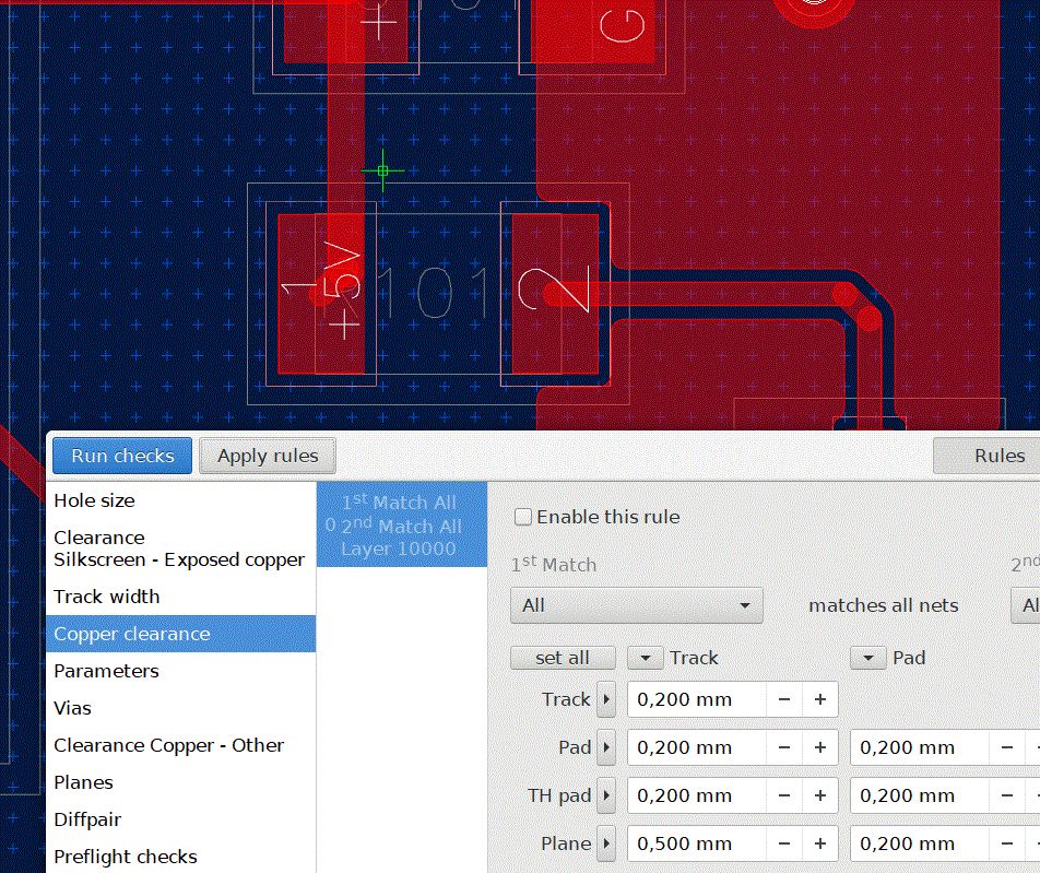 auch dort in Rules "plane to trace 0,5mm" eingestellt ist. Im Anhang ein
