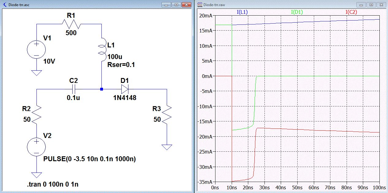 ps Beim einsetzen der Diode (siehe Datenblatt oben) MMSD4148 komme ich auf den Wert im Datenblatt für trr=4ns. juhuu.. dank an alle...