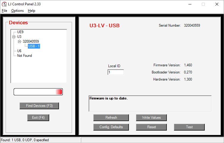 Hallo, ich verkaufe ein LabJack U3-LV USB-Mini-Messlabor. Zitat Hersteller: --------------- "Der LabJack U3 ist das "kleinste" Modul aus der LabJack-Familie. Und dabei bietet er alles, was Sie von einem Komplett-Messlabor erwarten: Analog-Ein- und Ausgangs-Kanäle, Digital-Kanäle und Zähler. Ideal für Experiment, Ausbildung und vieles mehr. 16 I/O-Leitungen, alle 16 können konfiguriert werden als... - Digital-Eingänge oder Digital-Ausgänge. - Analog-Eingänge, 12 bit, 0...2,4 V oder 3,6 V, single-ended oder differentiell. - Standard-Zähler, 32 bit (2 der Leitungen). - Spezial-Zähler (2 der Leitungen): Pulsbreiten-Modulation/PWM-Ausgang, Puls/Perioden-Timing, Puls-Zähler, Quadratur-Eingang. 4 zusätzliche Digital-I/O-Kanäle. 2 Analog-Ausgänge, 10 bit, 0...5 V. Unterstützt SPI, I2C und asynchrone serielle Protokolle (nur Master). Unterstützt Erfassung mit Software- oder Hardware-Timing. Maximale Eingangs-Stream-Rate 2,5...50 kHz (abhängig von Auflösung). USB 2.0/1.1 Full-Speed. Versorgung über USB." --------------- Der LabJack ist gebraucht, aber in gutem optischem Zustand (leichte Gebrauchsspuren). Einzig die Haltelasche am Gehäuse wurde mal aus Platzgründen entfernt. Technisch ist er einwandfrei. Es ist die aktuelle Firmware 1.460 installiert. Kein weiteres Zubehör vorhanden. Ich möchte gern EUR 75,- dafür. Versand als versichertes DHL Paket 5,-