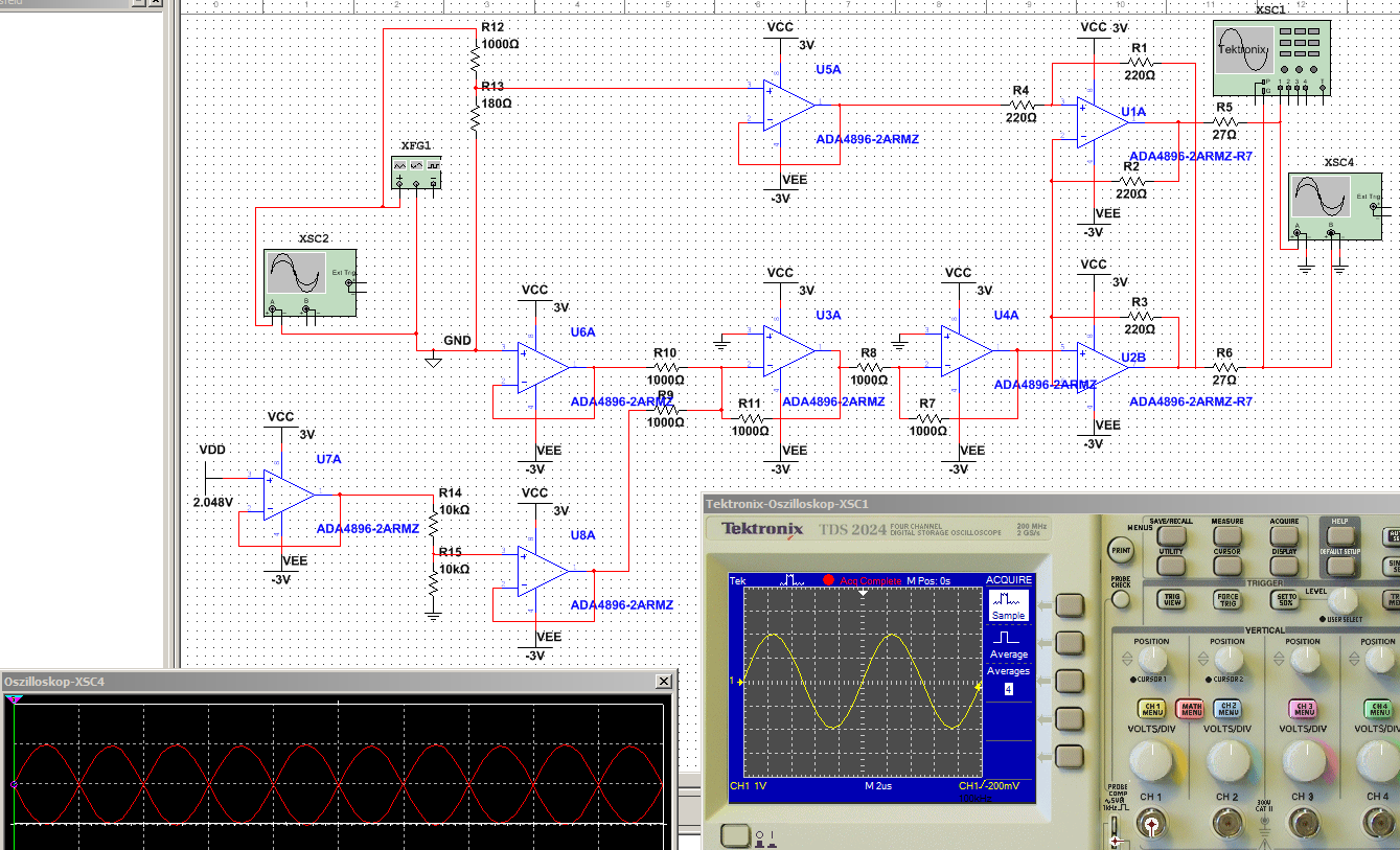 Hallo nochmal, also ich könnte das so bauen wie im Anhang. Da wird links ein 0 ... 13 V Signal erzeugt und rechts kommt ein differentielles raus zwischen 0 ... 2 V. Im Grunde werden da jetzt die Eingänge erstmal impedanzgewandelt wobei die Schirmung des Signals auch als Signal behandelt wird. Dann wird (unten) die Common-Mode-Spannung zur Signalmasse dazuaddiert, das dann nochmal invertiert. Das sind jetzt halt recht viele OPVs, isolieren wäre wohl einfacher.