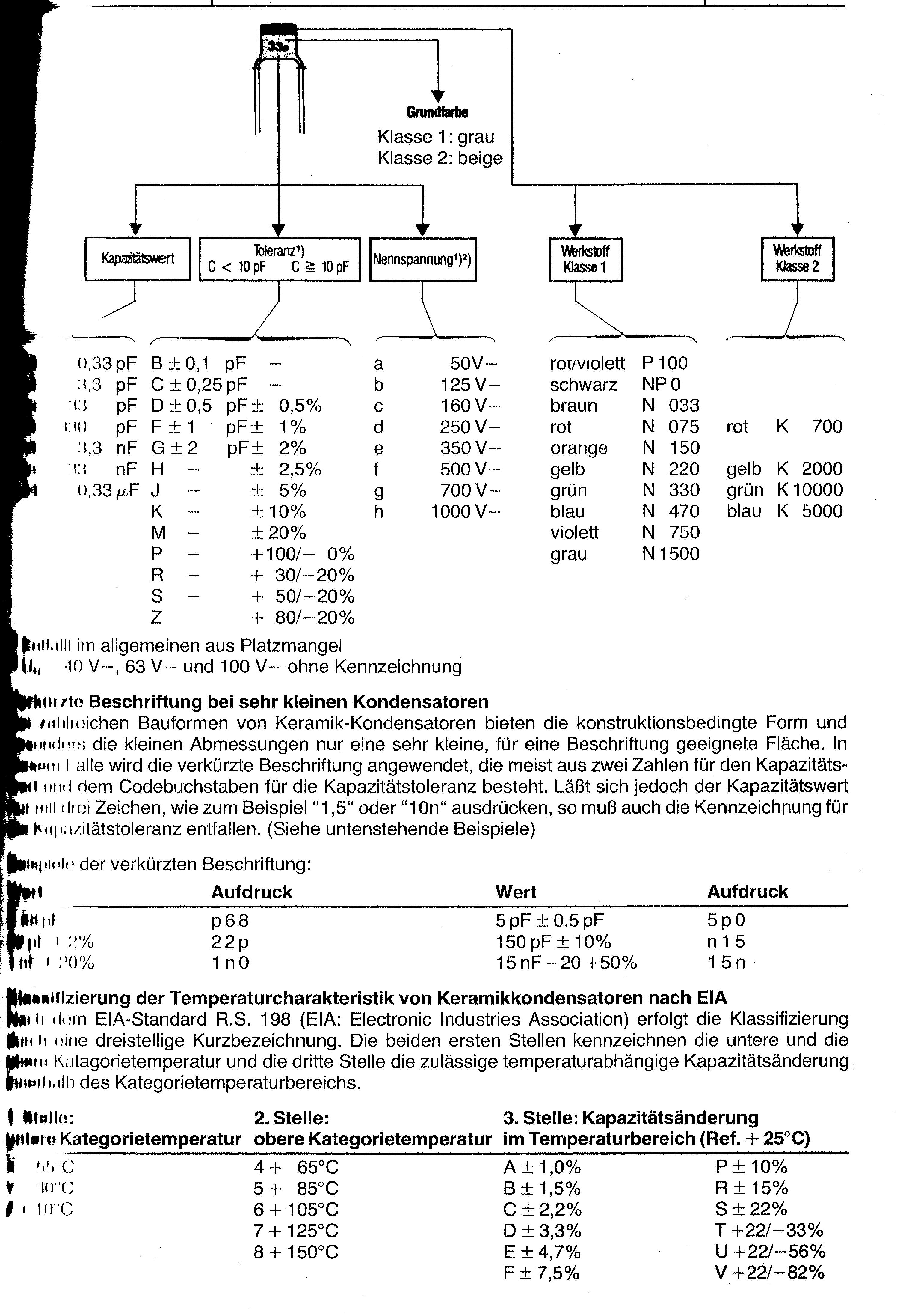 Meine Scans waren die Beantwortung der Frage von Ich (22.06.2009 21:44 ) bezüglich der Farbcodes. Darauf geben die nachfolgenden Links eigentlich auch keine befriedigende Antwort. Das Wesentliche dazu war imho schon auf dem ersten JPG zu erkennen. Kleine Kerkos mit hoher Kapazität, Wertaufdruck und blauem Körper sind übrigens Siemens (und -nachfolger) Typen (Sibatit 50000). Einen Scan von Valvo habe ich noch aus einem alten Taschenbuch, da sind die Erklärungen für Klasse II-Kerkos schon wieder dürftig. @Falk: der Originalscan hatte 47MB, ich bin mit dem eingedampften Wert zufrieden. Arno