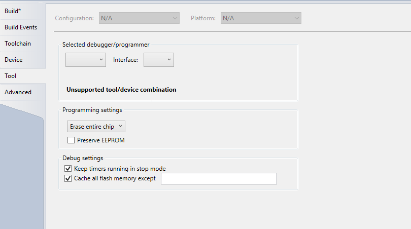 Plötzlich kann ich nicht mehr brennen. Vielleicht habe ich auch was (unwissentlich) verstellt... Habe ein STK500 dran und inzwischen auch ein ISP-MKII, kann aber unter Tool-> selected programmer nichts auswählen. Dasselbe unter Device Programming -> Tool: leere box. Ging alles einwandfei, nun ist Schluss. Was mache ich falsch? Welche Infos braucht ihr ggfs?