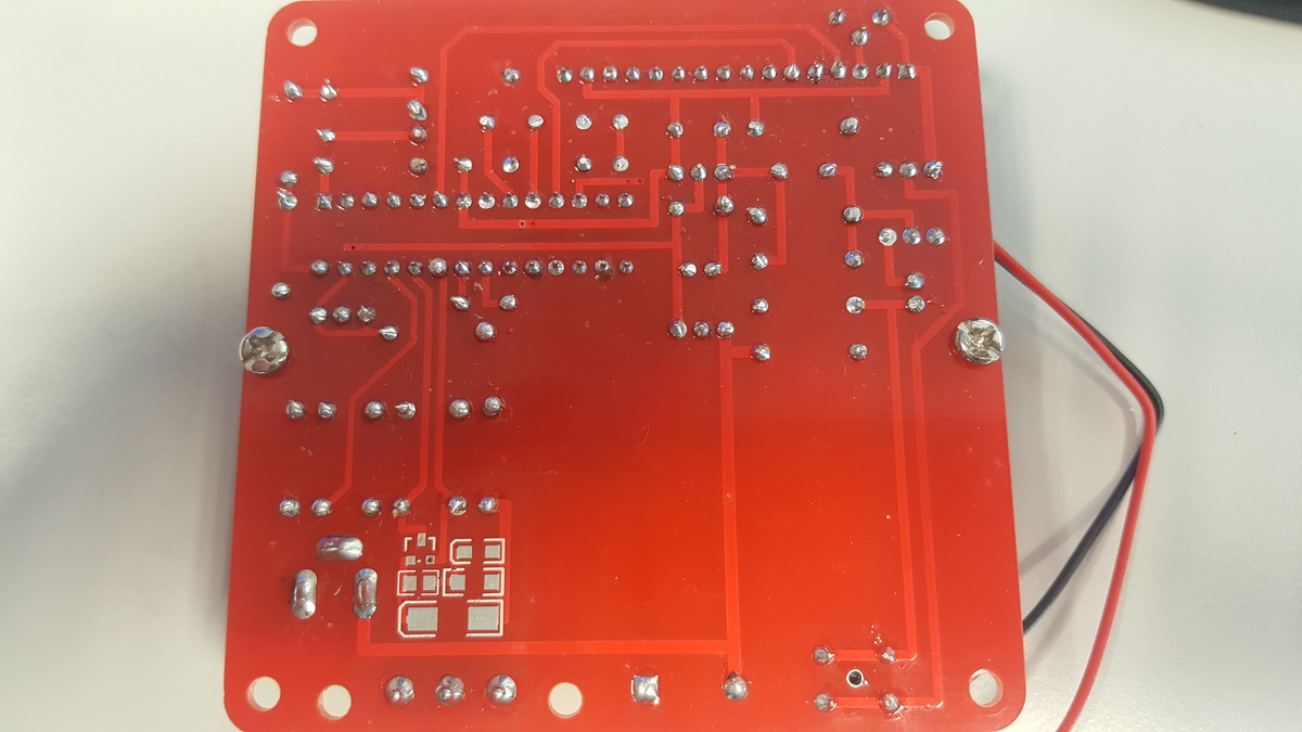 Hey, super. Da war tatsächlich ein dünner Steg. Steg entfernt, jetzt kommt kurz nach den Betätigen des Tasters: Bat. 5.1V empty! und dann schaltet es ab. Hab es jetzt nur über den Hohlstecker an nem Accupack der 5 V liefert. Auf der Platine steht aber 5.5 bis 12 Volt. Ist schonmal ein gutes Zeichen. Hab grad keinen 9V Block zur Hand. Wenn ich bis nachher nichts von mir hören lassen war das der Fehler mit dem Steg. Vielen Dank!!!!