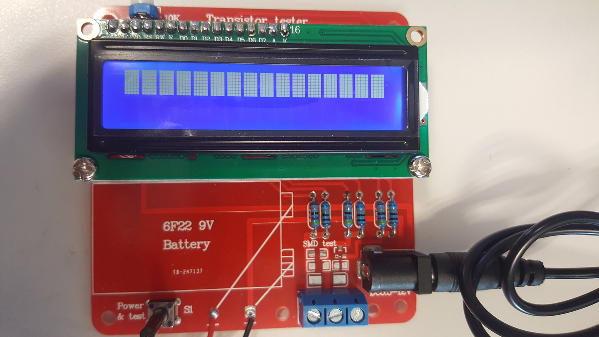 Hallo, ich habe mir von Bangg**d den Bausatz zum Prüfen von Transistoren zugelegt. Ein ähnliches Projekt ist hier im Forum unter AVR zu finden. Auch hier ist nochmal eine solche Schaltung dargestellt: http://www.elektronik-labor.de/Notizen/TransistorTester.html Das was ich bekommen habe als Bausatz wird auch nichts anderes sein. Die Schaltung ist von mir aufgebaut worden. Nun habe ich ein 12V Netzteil angeschlossen und den Button gedrückt ohne Bauteil zum Messen. Erst hatte ich nichts auf dem Display, jedoch habe ich bemerkt, dass ich im Eifer des Gefechtes den Kontrast vom Display nicht justiert hatte. Das schnell erledigt und nun habe ich auf dem zweizeiligen Display die obere Zeile komplett mit Quadern gefüllt. Das ganze läßt sich beliebig oft auch mit Netzteil weg und wieder ran wiederholen. Ich habe dann gesehen, dass es wohl einen Selbsttest gibt, indem man innerhalb von 2 Sekunden nach dem Einschalten den Button nochmals drückt währen in der Klemme eine Brücke steckt. Aber auch da tut sich nichts anderes. Jetzt meine Frage: Läßt die Anzeige des Displays schon auf eine bestimmte Richtung der Fehlersuche schließen? Wie kann ich hier am besten vorgehen? Gibt es noch Messpunkte bei dem ich mit dem Digitalmultimeter noch etwas prüfen kann? Grüße Tiberius