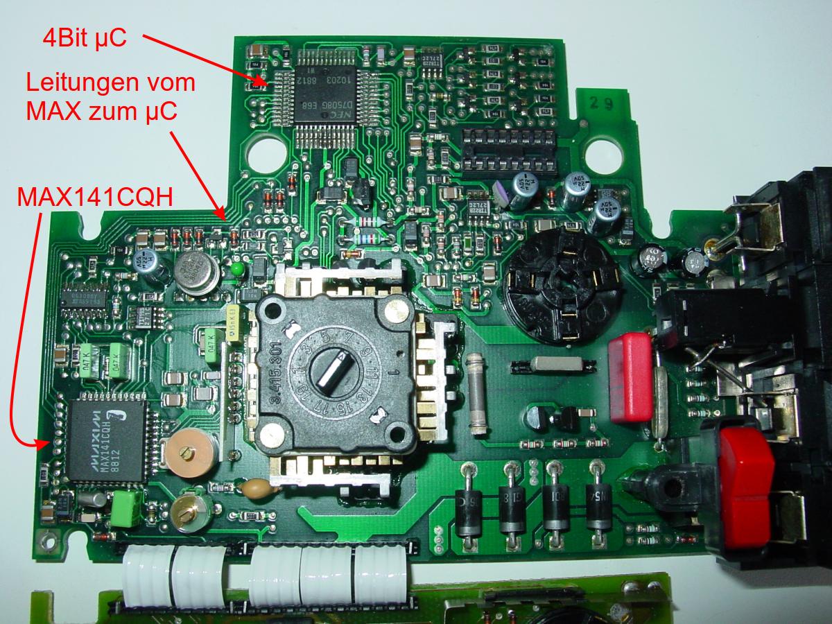 Hallo, ersteinmal vielen Dank für die Hinweise. Es geht mir nicht darum, das DMM zu reparieren oder so, sondern ich möchte nur wissen, was das IC macht. Im Anhang mal ein Bild dazu, Datecode ist 8812. Ich habe jetzt gesehen, das 3 Leiterbahnen zu einem µC 7508 gehen. Eine RTC kann ich mir zwar auch vorstellen, aber dazu fehlt eine Pufferbatterie (oder zählt das Teil einfach nur die Betriebsstunden, d.h. wenn die Batterien eingesetzt sind?) Im Chat von Maxim konnte mir keiner weiter helfen... @Grübel ... Auf der Seite der obsoleten Bauteile kann ich nicht erkennen, das der MAX141C ein ADC sein soll... @Teo Derix Datenblatt ist vom MAX1415, leider nicht vom MAX141 Viele Grüße