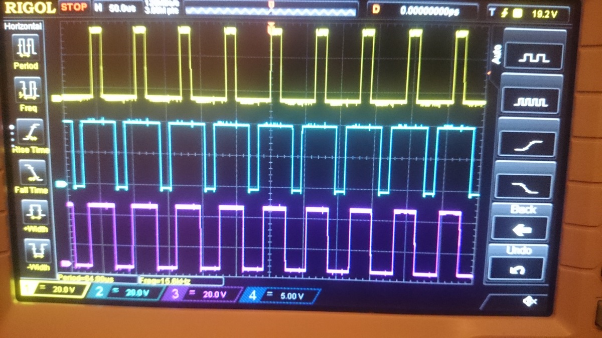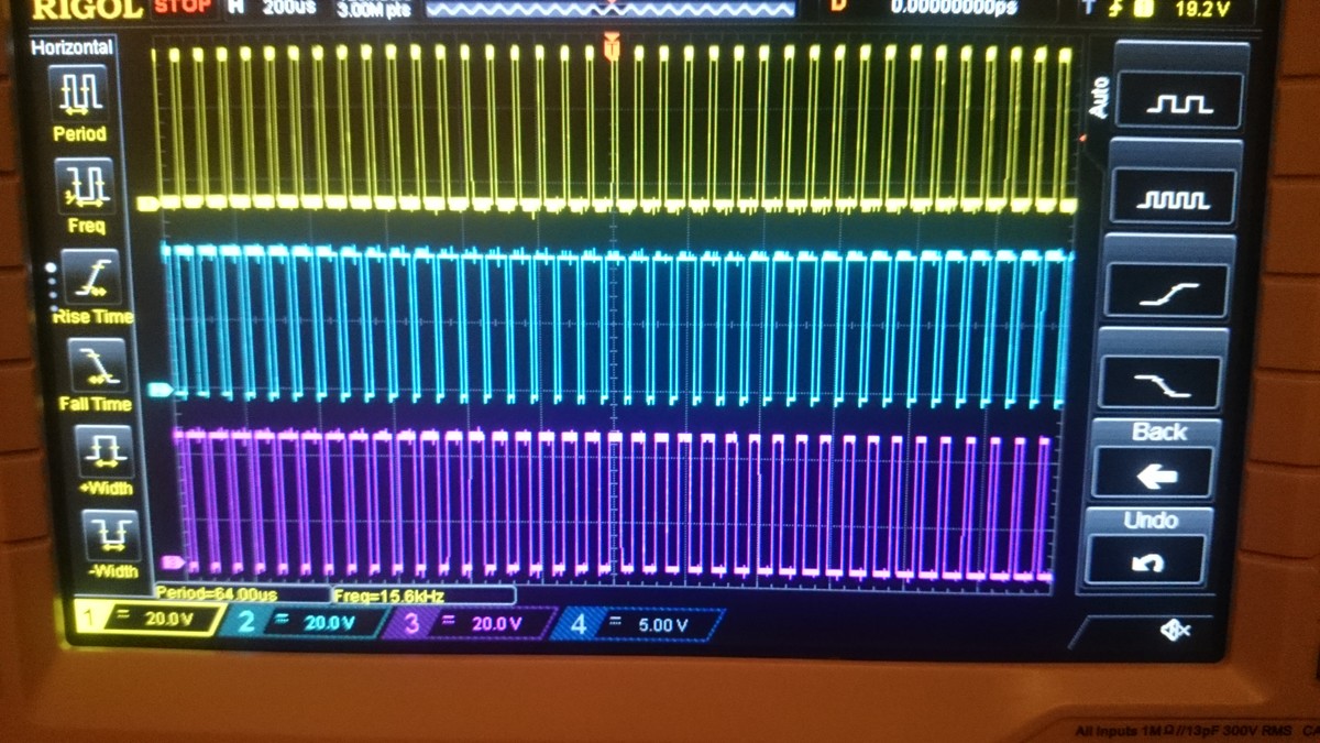 Hallo, ich versuche die Kommutierung eines BLDC Motors zu erkennen, Ich bin in dem Bereich totaler Anfänger und kenne nur die Blockkommutierung, Ich habe mir die 3 Strang Spannungen am Oszi angeschaut und es schaut nicht nach Blockkommutierung aus, ist das die Sinus Kommutierung? Vielen Dank