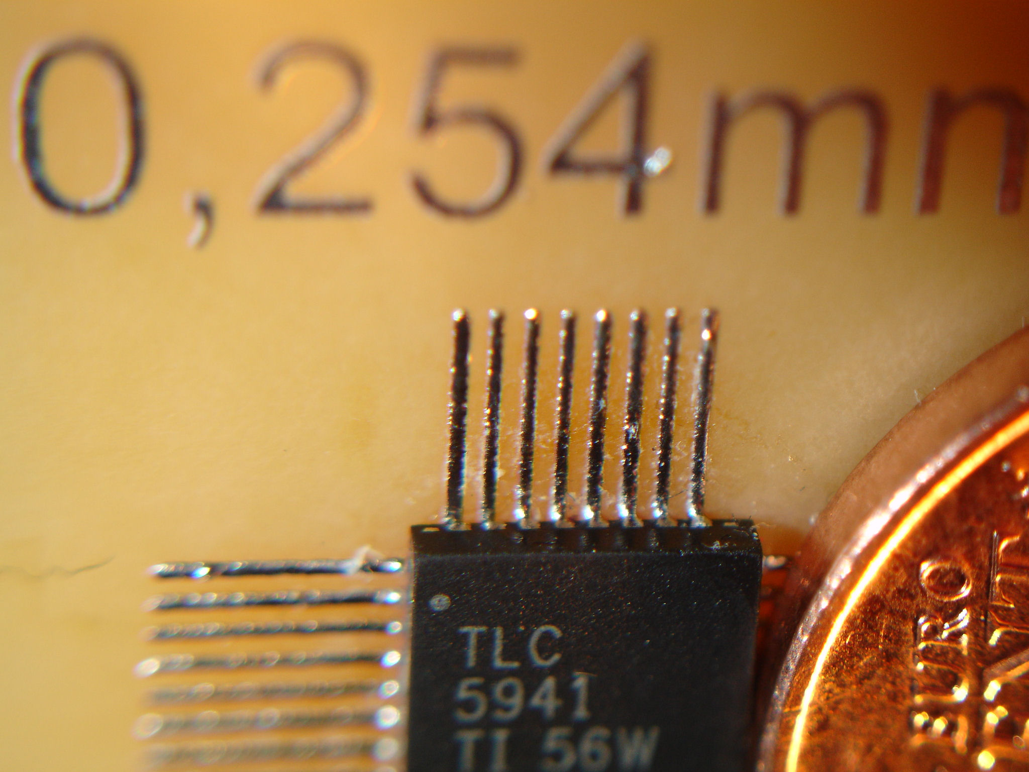 Und eine sehr ruhige Hand, Lupe und genug Licht. Und wenn's mal wieder zuviel Lötzinn war, dann wieder wech mit Entlötlitze. Dafür gehts beim zweiten Versuch am Pin dann aber gleich viel besser ;)
