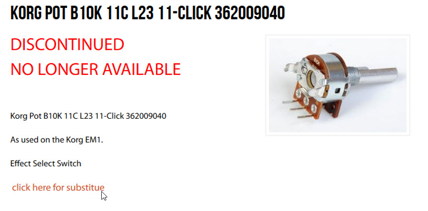 Hallo Gleichgesinnte, ich hoffe, dass einer aus dem Forum mir behilflich sein kann. Wir haben eine kleine Elektronikwerkstatt speziell für Musikinstrumente. Da kommt es oft vor, dass auch ältere Geräte auf Grund ihres Kultstatus bei uns in den Service gegeben werden. Musik ist halt zeitlos. Ich suche für mehere alte Korg Electribe M1 ganz spezielle 11-click Poties und hoffe jemand von Euch kann mir und unseren Kunden weiterhelfen. Leider sind bei den defekten Poties die Achsen gebrochen, sodass eine Instandsetzung nicht mehr möglich ist. Beim Vertrieb in Deutschland, USA und Türkei habe ich schon nachgefragt. Keiner hat diese Poties am Lager. Was mich extrem verwundert ist, dass mir auch keiner den Hersteller nennen kann. Albs, Mouser ect. sind es nicht. Auf dem Poti steht auch keinerlei Angabe dazu. Kann mir jemand helfen diese Poties zu finden? Im Anhang findet Ihr ein Bild dazu. Bei Korg wird er als KORG POT B10K 11C L23 11-CLICK 362009040 bezeichnet. Vielen Dank LG Jan