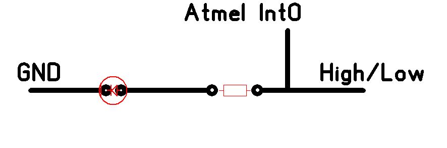 Hi Leute, Ich nütze an meinem Atmega8 int0 und int1. In meiner Testschaltung sind die Ausgänge von 2x Ne555 (kann Strom liefern und aufnehmen) über einen 10kOhm Wiederstand angeschlossen, funktioniert tadellos. Nun möchte ich aber gern über eine LED sehen wenn die Leitung am int1 auf high geht. Dazu habe ich mir die "Schaltung" im Anhang ausgedacht, ich weiß nicht warum, aber ich bin mir unsicher ob diese funktioniert, eigetlich sollte sie schon funktionieren,oder? Was meint ihr dazu?!