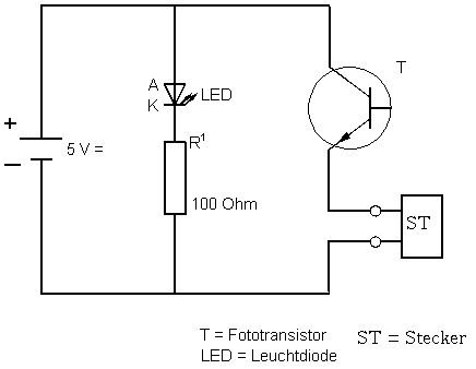 Salve Ich würde INT0 bzw. INT1 des µC's verwenden. Wie diese Pins aber über den Buskonnector geschleift werden kann ich dir leider nicht sagen. Da mußt du dir das Datenblatt/Beschreibung deines Board's anschauhen. Die 1. Schaltung wird höchstwarscheinlich funktionieren. Du mußt nur darauf achten dass der Fototransistor in Sperrrichtung betrieben wird. Es hann aber sein dass der Fototransistor zu wendig leitend wird wenn licht darauf fällt. In diesem Fall würde ich dann einen Transistor in Darlingtonschaltung verwenden. mfg Sepp