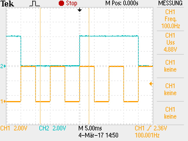 Hallo! Ich versuche mich gerade an einer Frequenzmessung mit der Input Capture Funktion des Timer1 an einem ATmega328p. In nachfolgendem kurzen Programm habe ich den Kern meines Problems zusammengefasst, bei 70 Hz Rechtecksignal am ICP1-Pin funktioniert noch alles, bei einer Frequenz von 100 Hz werden schon (reproduzierbar) Flanken ausgelassen (siehe Oszibilder) und ab 200-300 Hz, wird die ISR gar nicht mehr aufgerufen. Ich kann mir dieses Verhalten wirklich nicht erklären, weiß jemand Rat?