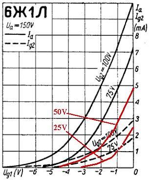 Hier in diesem Datenblatt ist das richtige Diagramm. Das erste von oben. An den Achsen muß Ua und Ia dranstehen. Die Gittervorspannung sind die Kurven. Das was du darstellst, ist das dritte Diagramm. http://tec.org.ru/_bd/17/1753_121.pdf
