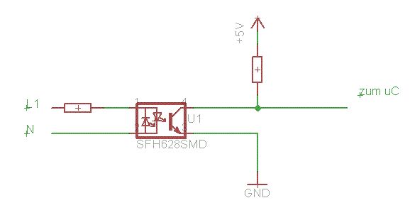 ich habe durch einen Optokoppler der mit 230V beschaltet wird (SFH628