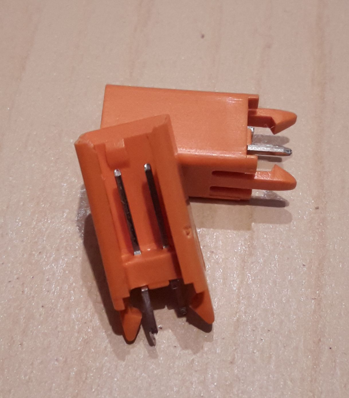 Hallo! Ich bin auf der Suche nach passenden Buchsen für die im Anhang abgebildete 2-polige orange Stiftleiste. Kennt jemand den Hersteller oder sogar die Modellbezeichnung? Reiner.