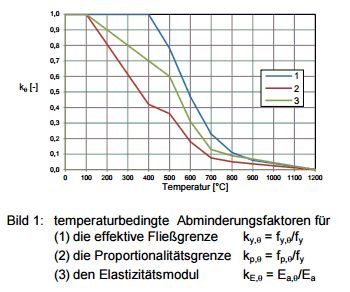 Weil ich gestern nach einem Gespräch mit einem ehemaligen Baustatiker drüber stolperte, hier mal eine hübsche Darstellung der Temperaturabhängigkeit der Fliessgrenze von üblichem Baustahl. http://www.bauforumstahl.de/upload/documents/brandschutz/nomogramme_en.pdf https://de.wikipedia.org/wiki/Fließgrenze