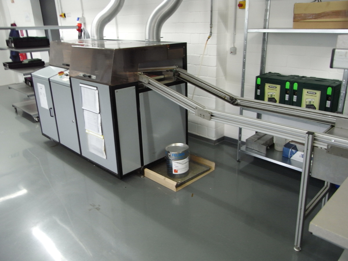 Wir bieten eine gebrauchte Wellenlötmaschine an. Modell/Hersteller unbekannt. Abmessungen: Standfläche 96*183cm. Einlaufband 60cm, Auslaufband und Kühlstrecke 200cm Arbeitsgrößen: 25cm Benetzungsbreite, durch die 5 mitgelieferten Rahmen 37cm Benetzungslänge, Transportbreite 40cm Vorheizzone: 80cm lang und 6 kW Heizleistung von unten, dadurch sollte auch bleifreies löten möglich sein, hängt natürlich auch davon ab wie heizintensiv die Leiterplatten sind, 16 Lagen Kupfer wird nur in Zeitlupe gehen. Anschluss: 16A CEE Tiegel: 1 Standard Lötdüse (Welle nach vorn ablaufend) Standort ist östliches Hamburg Zustand: Funktionstüchtig, aber keine Schönheit (mal überlackiert und im Schaltschrank sollten auch mall wieder alle Kabel sauber in die Kanäle verlegt werden), Aber wie geschrieben Sie läuft. Preisvorstellung VHB 1000€ OHNE Lot. Wer die Maschine inkl. der 175kg PB Lot im Tiegel haben möchte, zahlt dann für das Lot den entsprechenden Tageskurs vom Restmetallhändler, ca. 14€/kg. Die Maschine funktioniert und kann gerne besichtigt und entsprechend ausprobiert werden. Durch die demontierbaren Förderbänder passt das gute Stück auch auf einen PKW-Anhänger, zum verladen könnten wir sicherlich einen Stapler von einem Nachbarbetrieb organisieren. Eine Rechnung mit ausgewiesener Umsatzsteuer gibt's natürlich dazu.