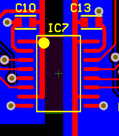 Andreas S. schrieb: > Empfohlen > wird z.B. einer Überlappung der beiden Masseflächen über etliche mm^2, > um eine sehr niederimpedante und großflächige Kopplung zu erzielen. Also ich lese genau das Gegenteil: "In applications involving high common-mode transients, care should be taken to ensure that board coupling across the isolation barrier is minimized." Ich habe immer eine große Lücke zwischen den beiden GND unter dem IC (siehe Bild). Ich hatte allerdings mal wegen Lieferschwierigkeiten einen "scheinbar" kompatiblen ISO7241 bestücken lassen und prompt funktionierte die Schaltung nicht mehr. Ich konnte statisch andere Pegel auf beiden Seiten messen, d.h. der Ausgang folgte mal dem Eingang und mal nicht. Nach Umlöten auf AD ging wieder alles einwandfrei. Seitdem lasse ich die Finger von den TI ISOxxx.