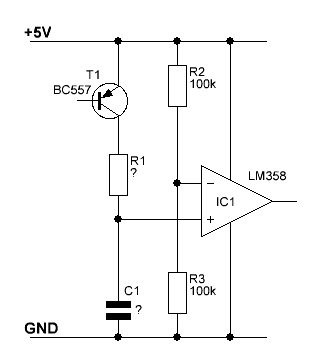 Ne, nur ein Teil einer Schaltung. Was ich noch sagen wollte: C1 sollte ein Normwert sein. R1 kann ich dann ja mit einem Trimmer einstellen. Mir geht es nur darum, wie ich das berechnen kann. Ich möchte es ungern experimentell ermitteln. lg