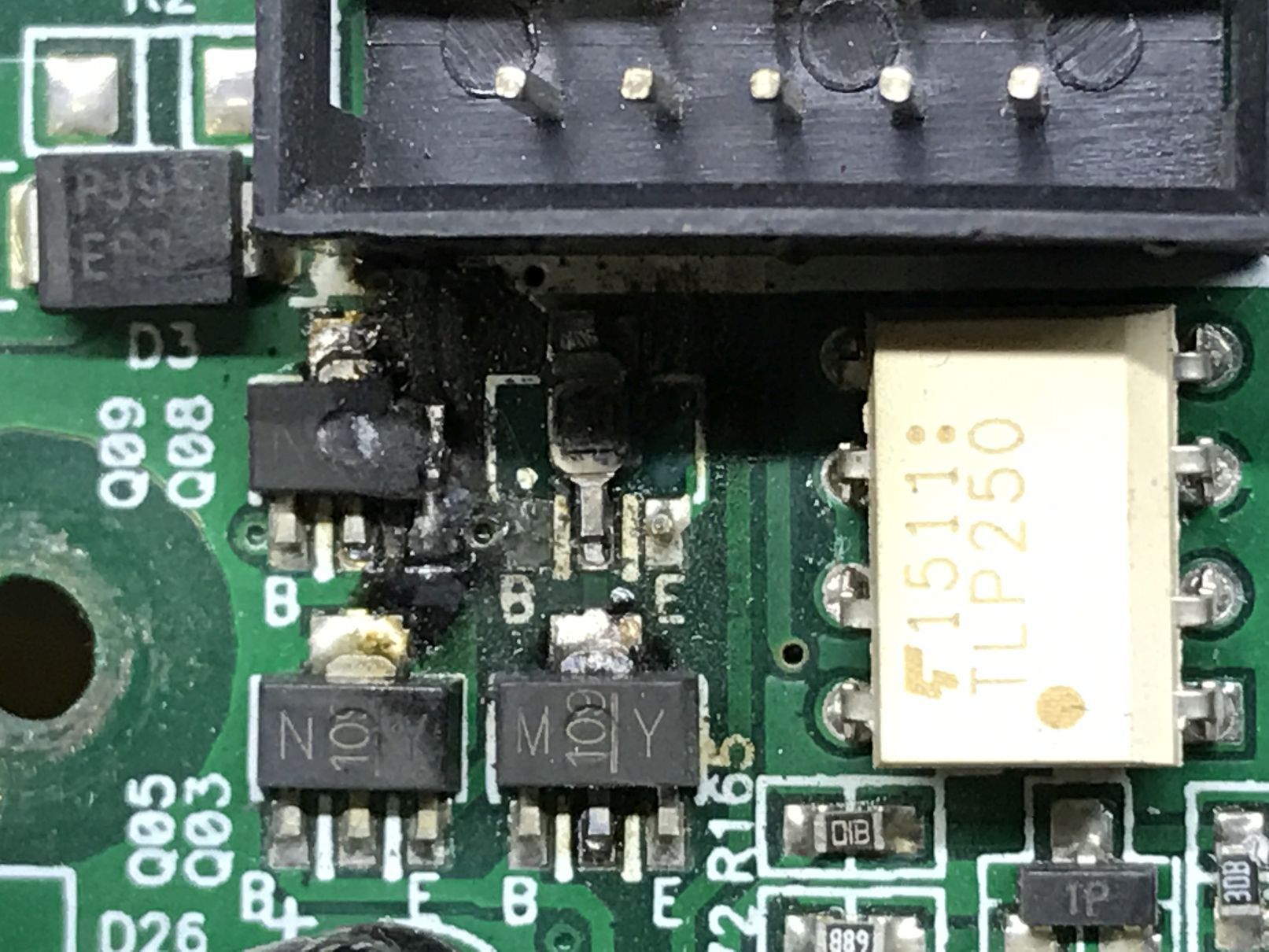 Und ja, die Leistungstransistoren sind auch defekt, dem Aussehen nach