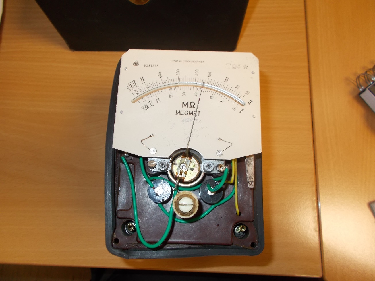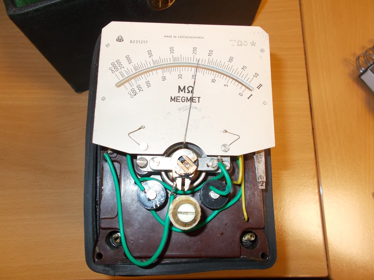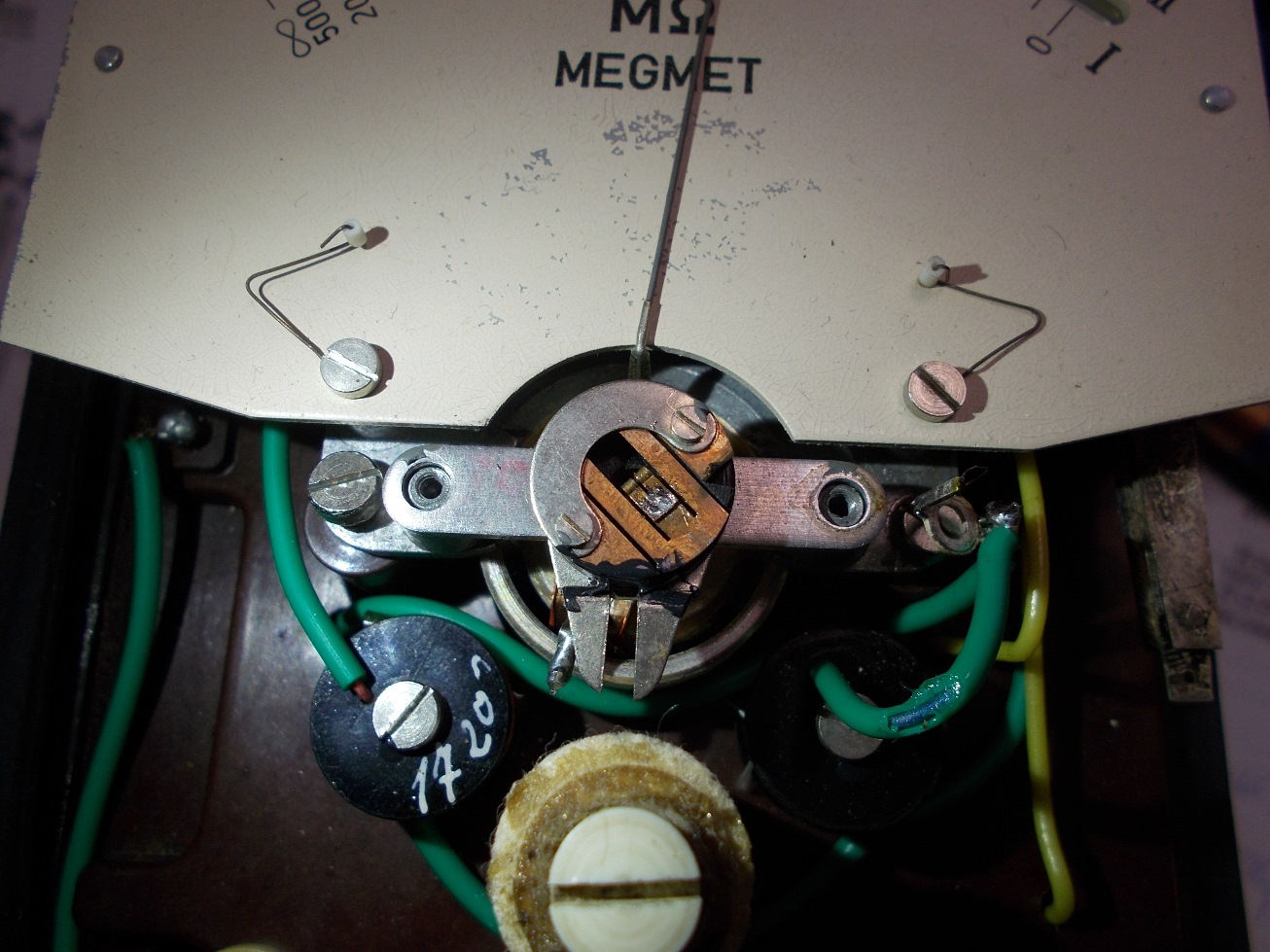 Hallo, Ich habe einen alten Kubelinduktor von einem Bekannten bekommen, allerdings ist das Ohmmeter defekt und ich möchte ihn doch noch retten. Ich habe leider kein Typenschild gefunden, auf dem Ziffernblatt steht nur MEGMET (siehe Bilder). Nach einer Analyse habe ich festgestellt das der Zeiger am Drehpunkt auf zwei Drähte (Flachbänder) hängt wobei einer gebrochen ist. Nun die Frage; hat schon jemand so etwas repariert? Was ist das für ein Draht (Flachband)und wo bekommt man so etwas? Ich würde mich über Unterstützung sehr freuen. Lg Muckfuchs