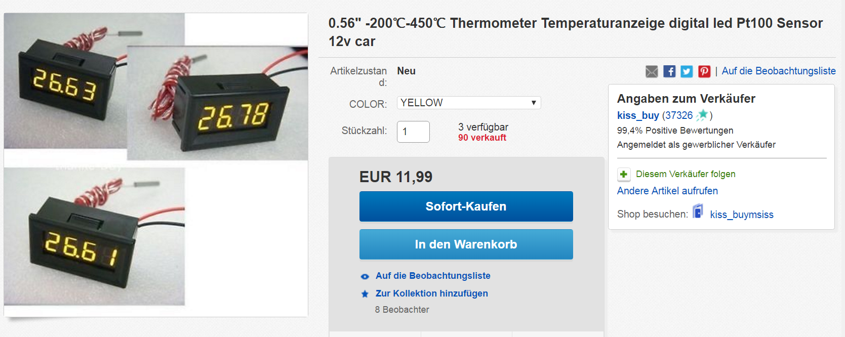 Hallo, ich hätte eine Frage zu einem Produkt aus China. Den Leider ist die Beschreibung wie immer bei sowas recht dürftig.. Ich will diese Anzeige als Öltemperatur Anzeige in einem KFZ verbauen. Vielleicht hat ja jemand sowas schonmal verbaut bzw. getestet. Folgende Fragen habe ich: Wenn die Anzahl der beleuchteten Segmente sich ändert, ändert sich dann die Helligkeit der einzelnen Segmente? (Bei einer Spannungsanzeige aus China war das so, gefällt mir überhaupt nicht, warscheinlich nur 1 Widerstand für die gemeinsame Anode oder Kathode verbaut denke ich) Kann man die Anzahl der Nachkommastellen irgendwie bestimmen? (z.B. duch eine Lötbrücke etc?) Wenn die Anzeige zwischen 99,9°C und 100°C wechselt fällt ja die Nachkommastelle weg. "Springen" die Anzeigen hin und her? Oder sind sie irgendwie entprellt ? Für euren Rat währe ich dankbar ;) Mfg