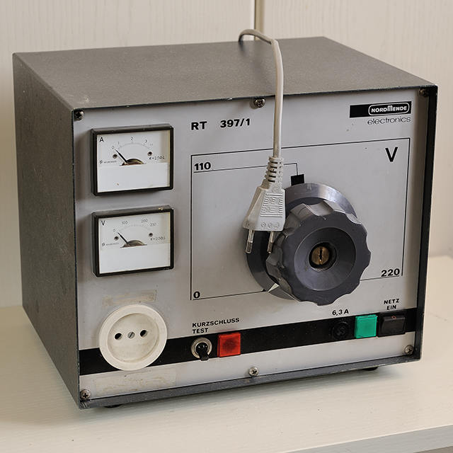 http://www.radiomuseum.org/r/nordmende_regel_trenntransformator.html erst mal ein Bild zum Anschauen. In der Firma benutzen wir sowas aus DDR-Produktion, hab neulich die vergilbte Bedienungsanleitung auf fusseligem Papier eingescannt. Conrad hat die mal verkauft. Interessant an dem Schaltplan war, dass der Netzschalter ein Drehschalter mit einer nicht rastenden Mittelstellung ist, in der ohne Last und mit Vorwiderstand hochgefahren wird. Die Skala ist auch fast so übersichtlich wie hier, aber dafür ist das Instrument zuständig. Ich vermute mal, dass im Leerlauf der Blindstrom das Messgerät verwirrt, auch wenn es etwas hochwertigeres ist.