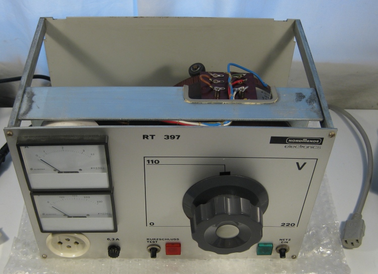 Christoph K. schrieb: > http://www.radiomuseum.org/r/nordmende_regel_trenn... > erst mal ein Bild zum Anschauen. Fast, meiner ist ohne /1. Sieht innen ein wenig anders aus. Sollte aber irrelevant sein. > In der Firma benutzen wir sowas aus DDR-Produktion, hab neulich die > vergilbte Bedienungsanleitung auf fusseligem Papier eingescannt. Conrad > hat die mal verkauft. Interessant an dem Schaltplan war, dass der > Netzschalter ein Drehschalter mit einer nicht rastenden Mittelstellung > ist, in der ohne Last und mit Vorwiderstand hochgefahren wird. Und die brummen nicht? > Die Skala ist auch fast so übersichtlich wie hier, aber dafür ist das > Instrument zuständig. Ja, die großen Einbauinstrumente sind sehr nett. > Ich vermute mal, dass im Leerlauf der Blindstrom das Messgerät verwirrt, > auch wenn es etwas hochwertigeres ist. Nee, genau dafür ist das Ding gebaut (Verbrauchsmessung mit hohem Blindstromanteil für Schaltnetzteile, etc.) Auflösung ist 0,1W. https://www.heise.de/video/artikel/Irrlichter-1508129.html Meins ist das "Referenzgerät" bzw. der Nachfolger davon (NZR SEM16+): http://www.nzr.de/de/produkte/elektrizitaetszaehler-1,1/standby-energy-monitor,1/standby-energy-monitor-sem-16.html Was mir noch aufgefallen ist: ich habe mal mit meinem Flue 87 das Tastverhältnis der Netzspannung gemessen. Da werden 50,4% angezeigt. Kann es sein, dass auf meiner Netzspannung ein Gleichstromanteil drauf ist? Matthias S. schrieb: > T. Raffo schrieb: >> die liegt zwischen 13 und 15 Watt (ändert sich leicht beim >> Durchdrehen zwischen 0 und 255V), ist also im normalen Bereich, oder? > > Das klingt alles sehr normal. So ein Trafo ist ja in der Werkstatt nicht > im Dauerbetrieb und deswegen wird ein stärkeres Brummen akzeptiert. > Du kannst aber mal schauen, ob da nicht irgendein Metallteil mitschwingt > oder magnetisch vom Trafo angezogen wird, das das Brummen verstärkt. Hmm. Das ist erstmal beruhigend. Ich hatte den Trafo mal ohne das äußere Gehäuse betrieben, da gab es keine Änderung. Allerdings ist der Trafo innen auf einem großen Stahlblech montiert, welches beim Nachfolger 397/1 zu fehlen scheint. Das könnte natürlich der Übeltäter sein. Ich mach mal ein Foto.