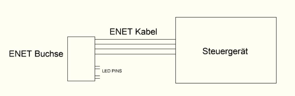 Hallo Rufus, es sieht so aus, dass im Fahrzeug ein Steuergerät ist das Ethernet kann. Es hat nur keine Ethernetbuchse. Ich soll jetzt dort eine einbauen. Somit habe ich eine verbindung zwischen 2 Geräten. PC und Steuergerät. Ich habe dir mal ein Bild mit einer kurzen zeichnung angehangen. Dann macht es wahrscheinlich keinen Sinn einen kompletten Netzwerk Controller einzubauen nur um die LEDs zum leuchten zu bringen oder? :) VG Peter