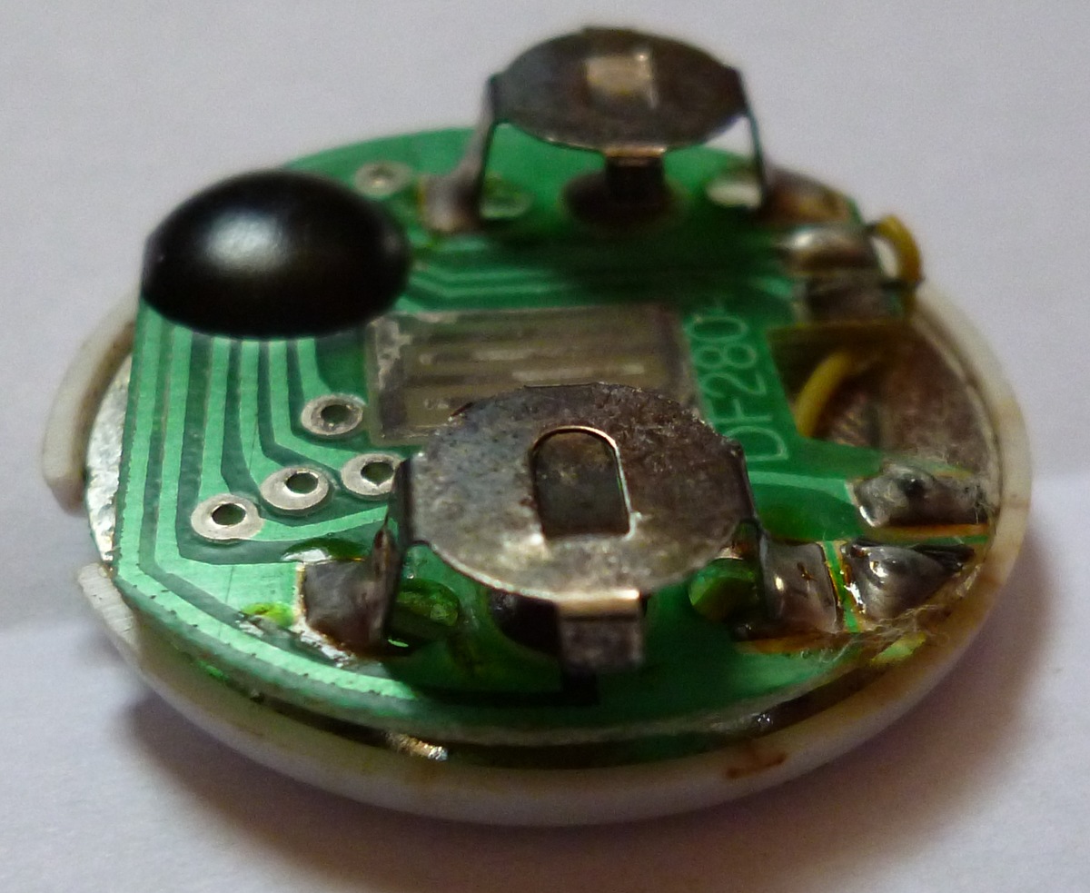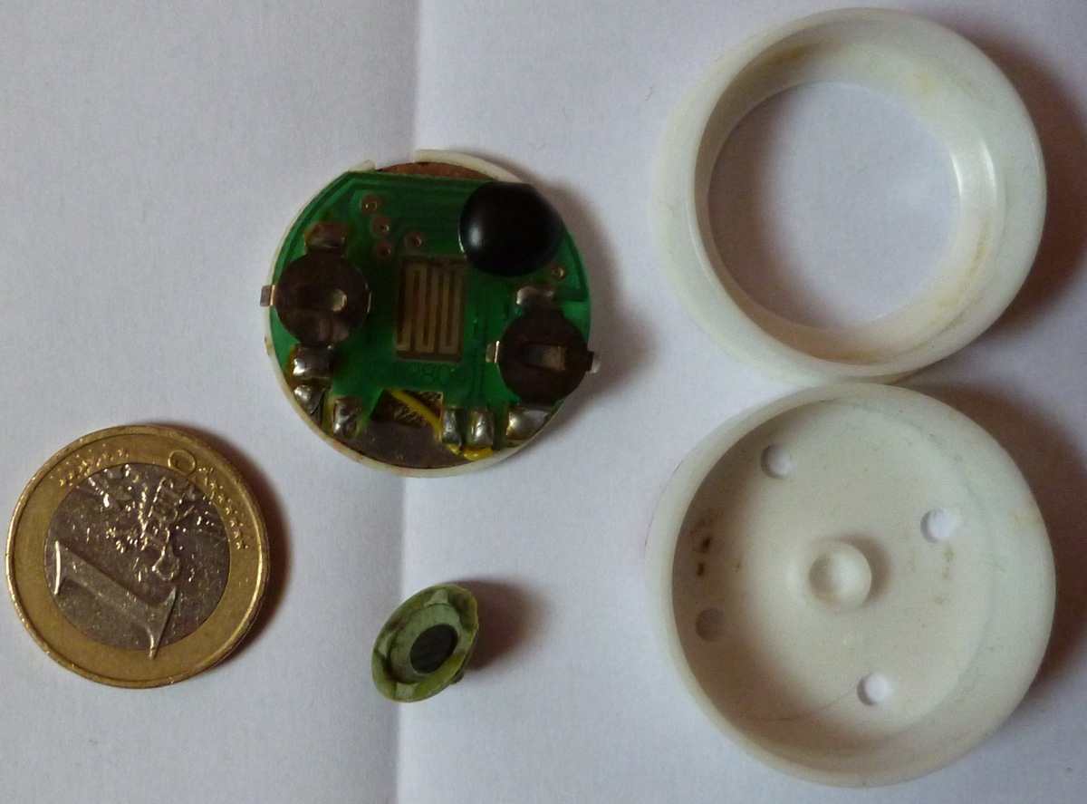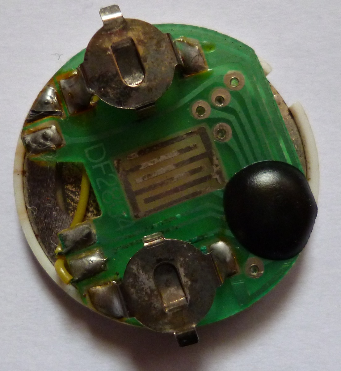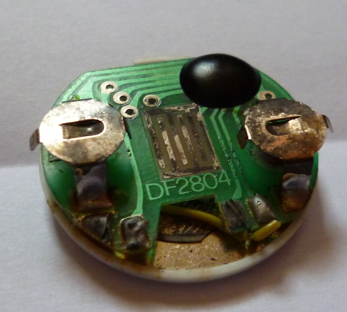 Hi, ich möchte ein altes Spielzeug wieder bauen. Dieses hatte auf Knopfdruck eine Melodie abgespielt und dazu geblinkt. Die Batterien konnte man nicht einfach rausnehmen. Jetzt viele Jahre später habe ich es mit relativ großen Aufwand rausbekommen. Die Batterien waren leicht ausgelaufen und haben Rost angesetzt. Beim Rausmachen haben sich leider auch die Kontakte zu den LED getrennt. Ich habe neue Batterien reingemacht (SR41/AG3/392/..) und die verbaute Piezoelektrische Membran hat Töne von sich gegeben. Jedoch waren die von sehr schlechter Qualität und hatten mit dem ürsprünglichen nix zu tun. Auch ging es sofort los ohne eine Taste zu drücken. Ich habe die Batterien wieder entfernt und in der Hoffnung, dass es danach besser geht es mit Essig gereinigt (Rost und ausgelaufene Batterier-Reste weggemacht). Danach wieder versucht, jedoch spielte es nun überhaupt nix mehr ab :( Die LED's hatte ich getrennt getestet. Diese sind noch funktionstüchtig. Nun zu meiner eigentlichen Frage: Wie hoch stehen die Chancen, dass man diese Elektronik wieder bauen kann? Was tun? Oder Alternativ, wie hoch ist der Aufwand dies neu zu bauen? Wär cool wenn man die gleiche Meldodie wieder hinbekommen könnte. Lautsprecher: In etwa wie die Bilder hier: https://de.wikipedia.org/wiki/Ferroelektrischer_Lautsprecher bischen größer als ein 2€ Stück (2,8cm Durchmesser (2euro 2,575cm) Darauf ist eine Platine gleicher Größe. In der Höhe ist darauf ca 4mm Platz (u.A. Batterien), außer in der Mitte. Da ist Kontakt zum Druckelement, der es dann auslösen soll. Würde mich über ein paar Tipps freuen. Aber vielleicht bin ich hier auch im falschen Forum. Mein Wissen über diese Thematik ist leider nicht allzu groß.