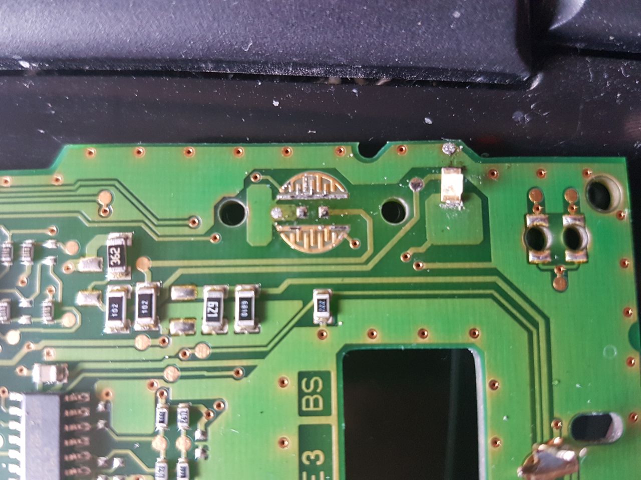 Hallo, ich bin zur Zeit dabei, die Beleuchtung in meinem Astra H (BJ 2005) zu ändern. Ich habe nun die Klimabedienung ausgebaut und alle Leds ausgelötet und neue draufgelötet. Wenn ich das Teil nun wieder anschließe und das Licht einschalte, leuchten alle Tasten außer die für die Heckscheibenheizung. Dieser bleibt einfach dunkel. Auch wenn ich ihn drücke bleibt er und die Led in der Ecke dunkel. Leider weiß ich gerade nicht, wie das vorher war...Ist das so gewollt oder habe ich irgendetwas falsch gelötet? Ich habe schon mit dem Multimeter nachgemessen und an der Led kommt gar kein Strom an. Was könnte das Problem sein? Es geht um die zwei LEDs rechts oben.