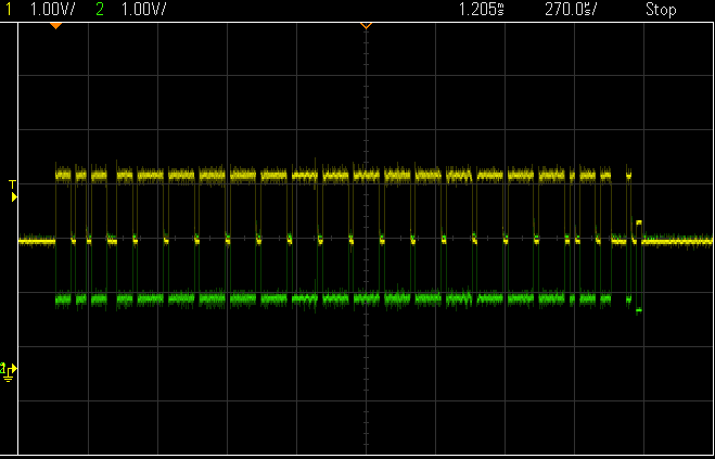 Hallo, ich habe eine CAN-Kommunikation aufgebaut, die auch ohne Probleme funktioniert, allerdings hat das ACK Bit einen seltsamen Pegel. 2 Teilnehmer, PCAN-USB und TI ISO1050 an STM32F405, je mit 120 Ohm abgeschlossen. Kann sich jemand vorstellen woher das kommt? Grüße Martin
