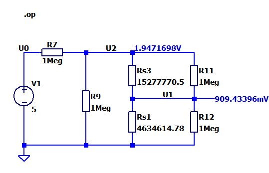 Hab die Formel erstellt. Rs2 benötigst du nicht bzw. du kannst dir beliebig viele alternative Lösungen mit zusätzlichem Rs2 generieren. R1 = R11||Rs3 R2 = R12||Rs1 R2 = U2*R7*R9*U1/(U2*(U0*R9-U2*(R7+R9))) R1 = (U2/U1-1)*R2 Rs3 = R1*R11/(R11-R1) Rs1 = R2*R12/(R12-R2) Die Datei für LTspiceXVII ist im Anhang.
